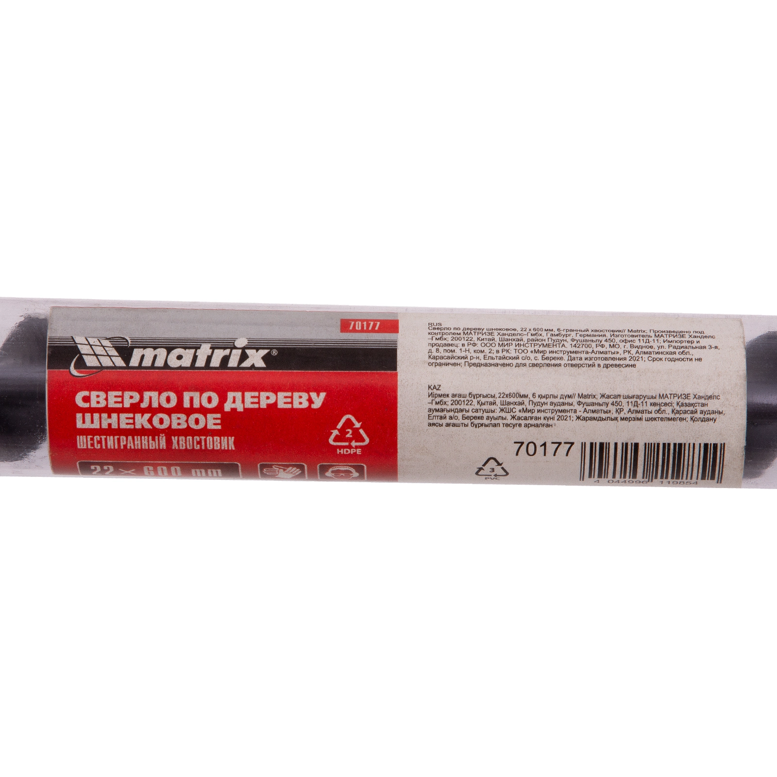 ПроизводителиСверло по дереву шнековое, 22 х 600 мм, 6-гр. хвостовик (70177) MATRIX