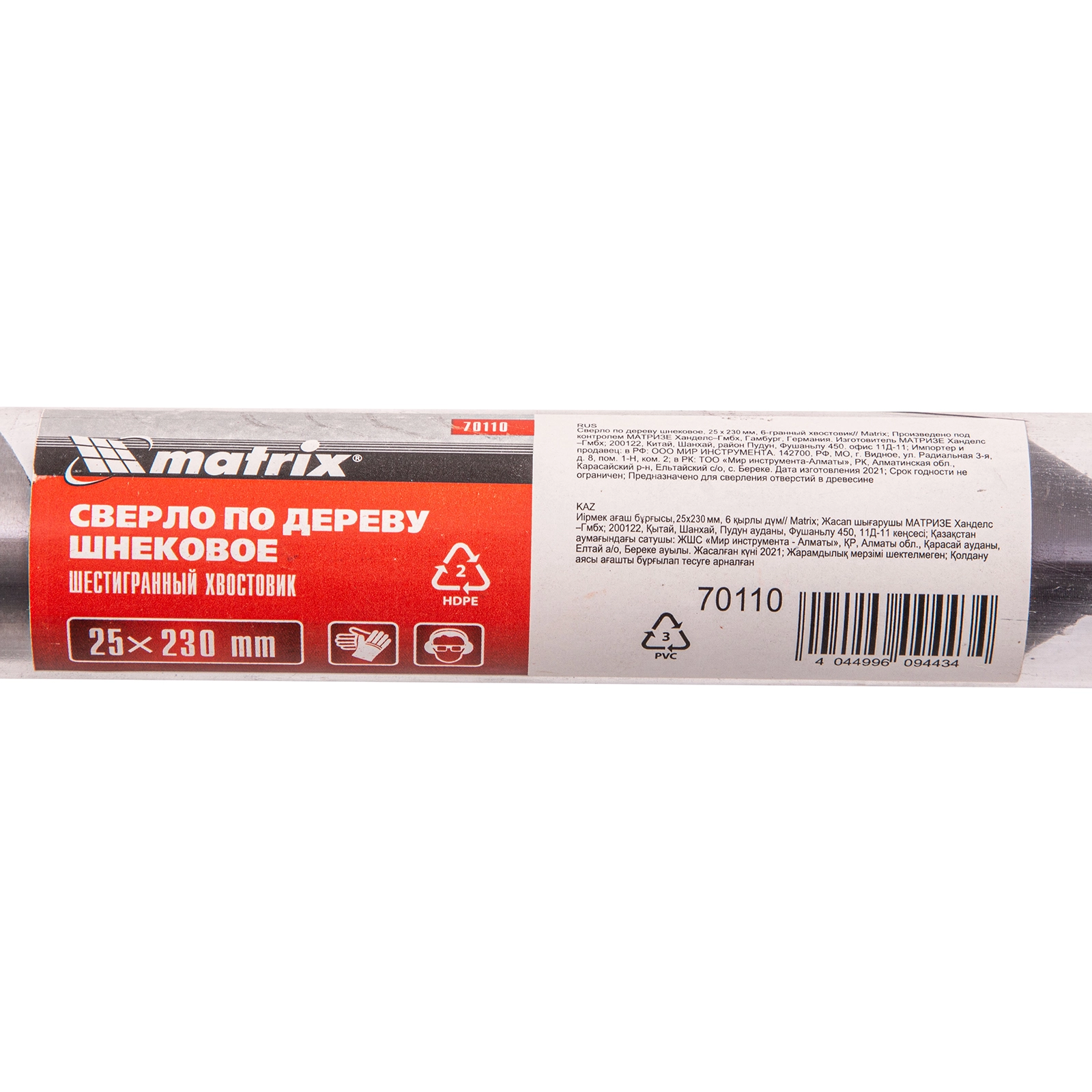 ПроизводителиСверло по дереву шнековое, 25 х 230 мм, 6-гр. хвостовик (70110) MATRIX
