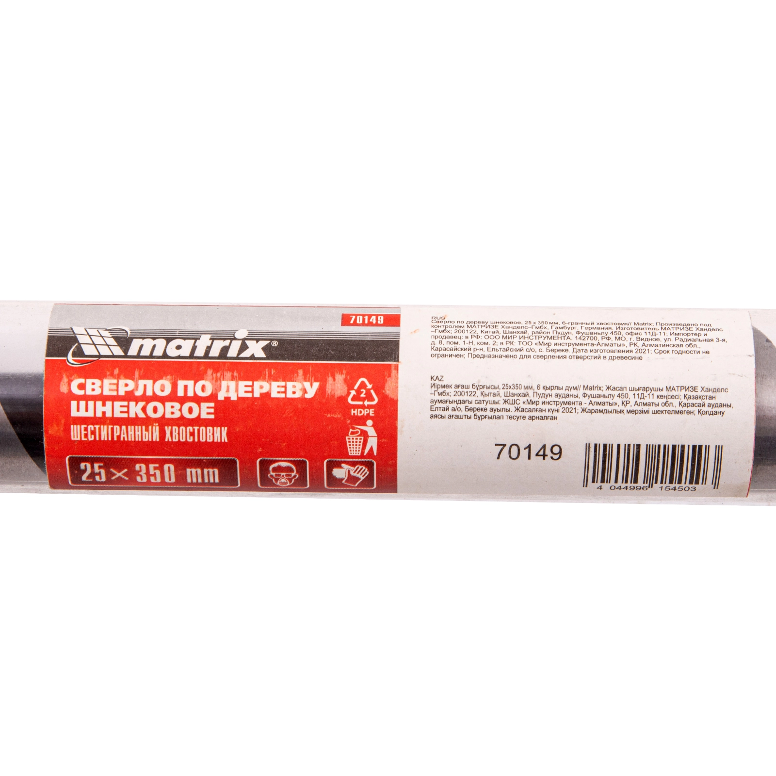 Шнековое сверло по дереву Matrix 70149, размер 25 х 350 мм, с 6-гранным хвостовиком, позволяет осуществлять сверление отверстий на большую глубину.