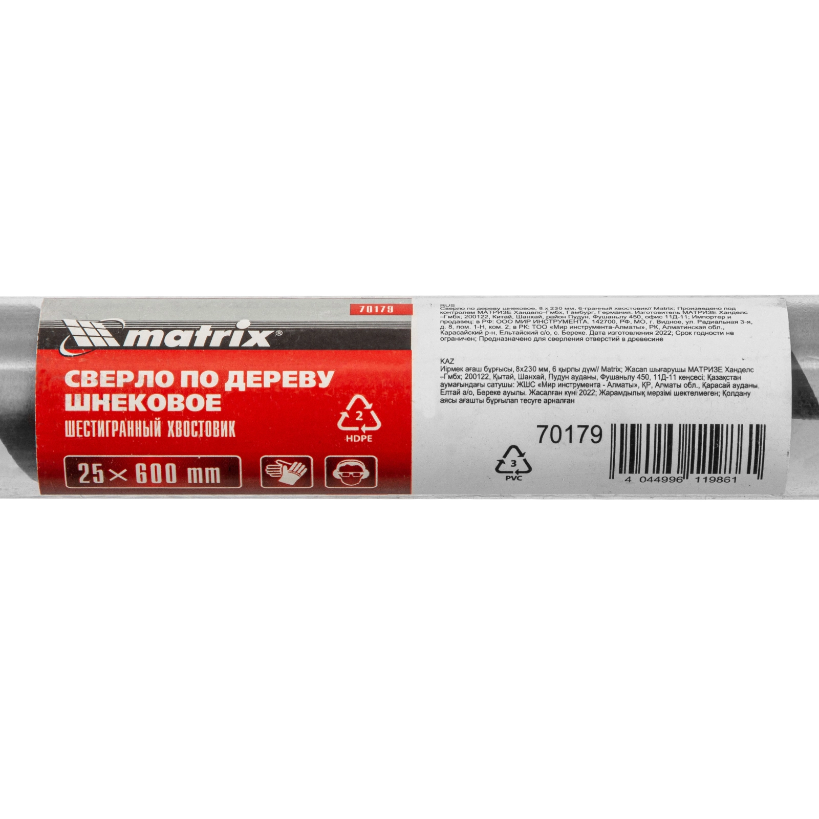 Шнековое сверло по дереву Matrix 70179, размер 25 х 600 мм, с 6-гранным хвостовиком, позволяет осуществлять сверление отверстий на большую глубину.