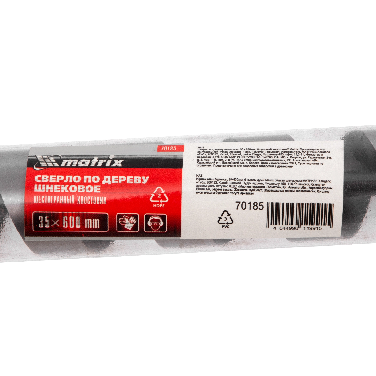 ПроизводителиСверло по дереву шнековое, 35 х 600 мм, 6-гр. хвостовик (70185) MATRIX