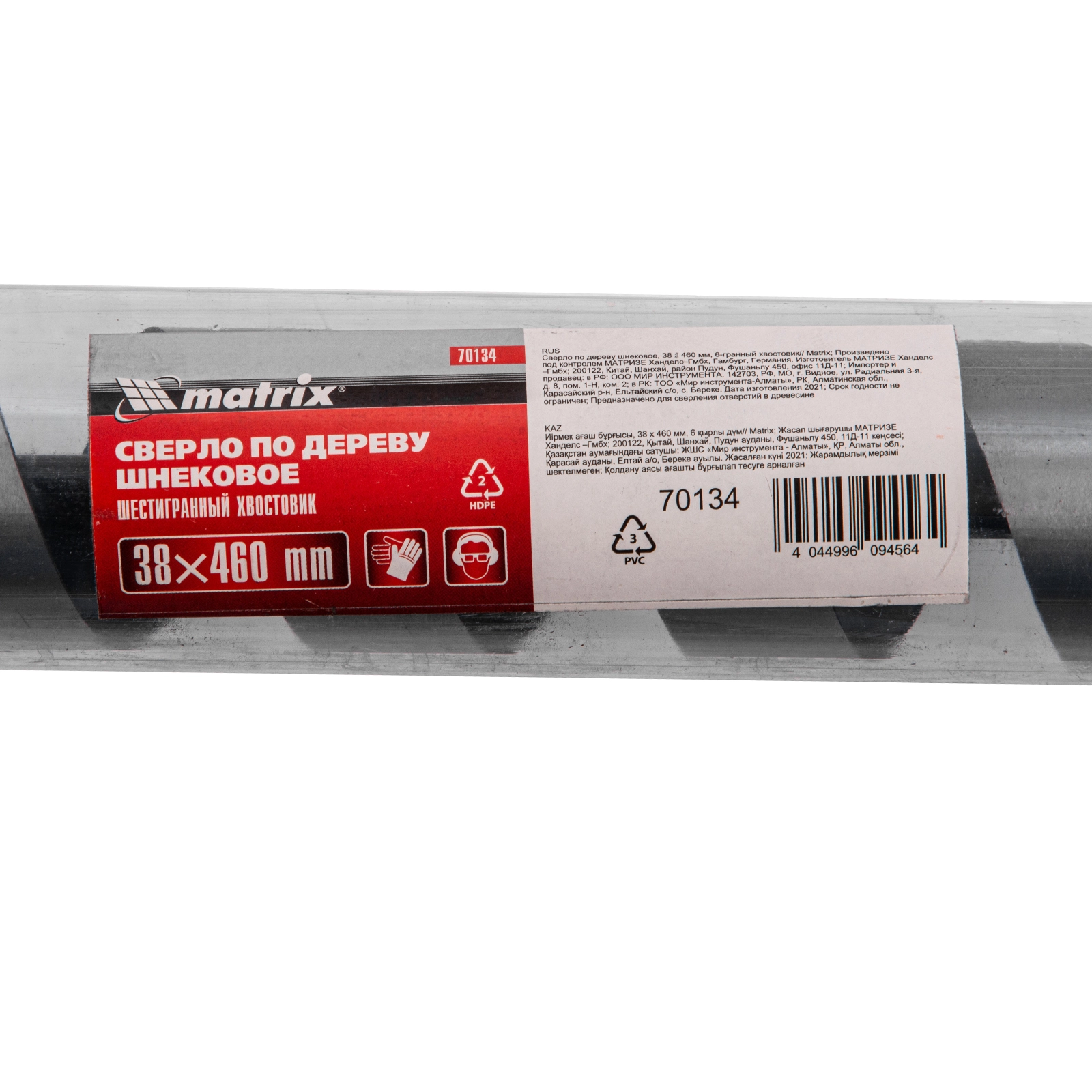 ПроизводителиСверло по дереву шнековое, 38 х 460 мм, 6-гр. хвостовик (70134) MATRIX