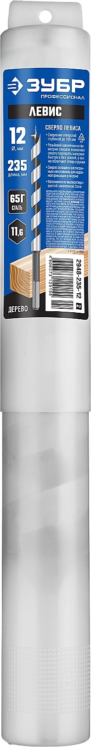ПроизводителиСверло по дереву, спираль Левиса, HEX хвост., d=12х235мм (2948-235-12_z02) ЗУБР