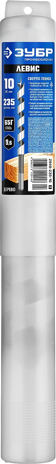 ПроизводителиСверло по дереву, спираль Левиса, HEX хвост., d=10х235мм (2948-235-10_z02) ЗУБР