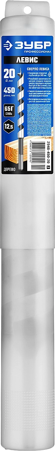ПроизводителиСверло по дереву, спираль Левиса, HEX хвост., d=20х450мм (2948-450-20_z02) ЗУБР