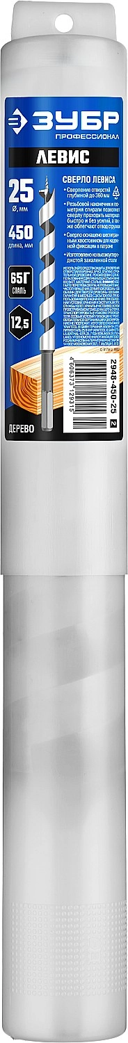 ПроизводителиСверло по дереву, спираль Левиса, HEX хвост., d=25х450мм (2948-450-25_z02) ЗУБР
