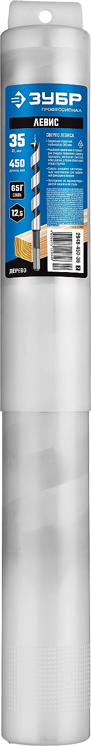 ПроизводителиСверло по дереву, спираль Левиса, HEX хвостовик, ЗУБР Профессионал 2948-450-35, d=35х450мм
