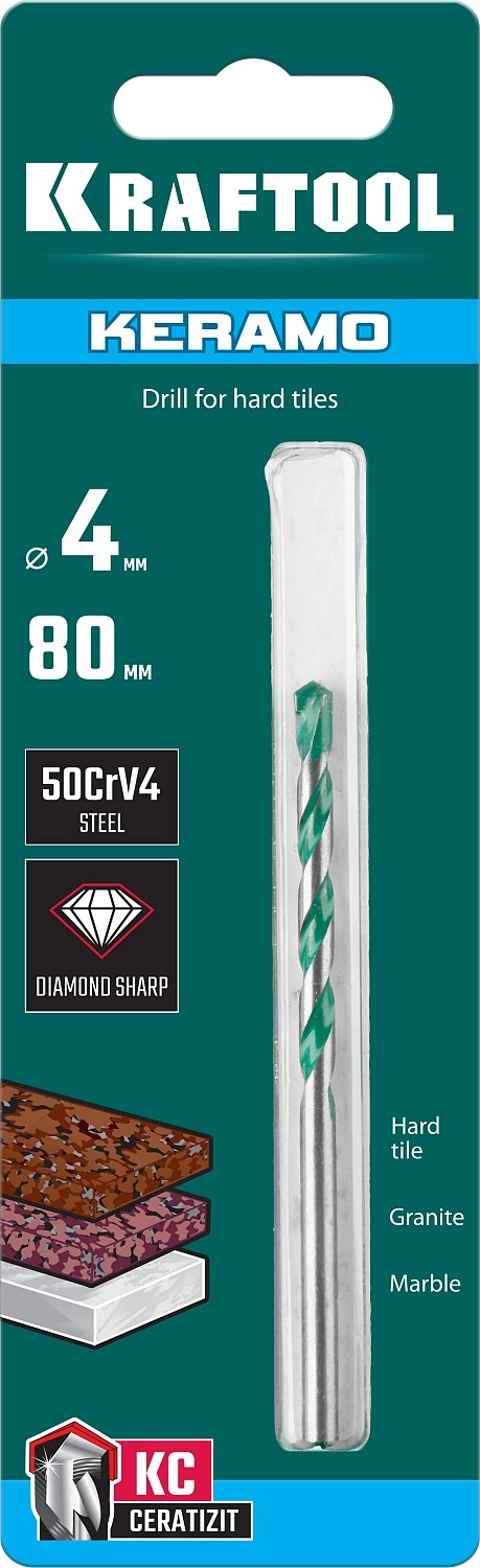 ПроизводителиСверло по керамограниту, 4х80мм, тв.сплав КС,Keramo (29175-080-4) KRAFTOOL