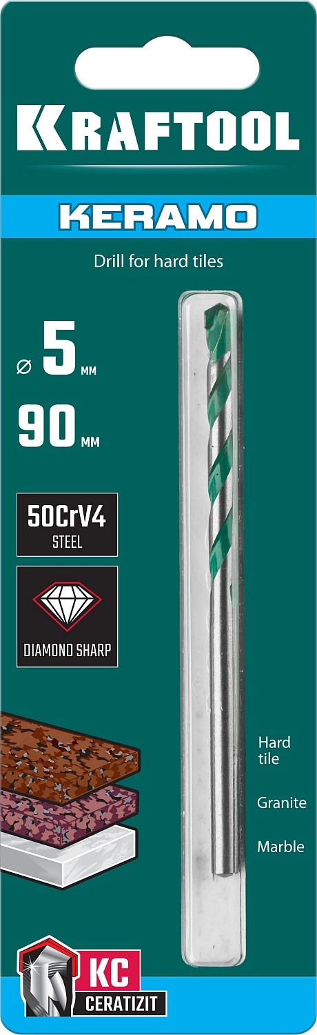 ПроизводителиСверло по керамограниту с твердосплавной пластиной 5 х 90 мм KERAMO (29175-090-5) KRAFTOOL