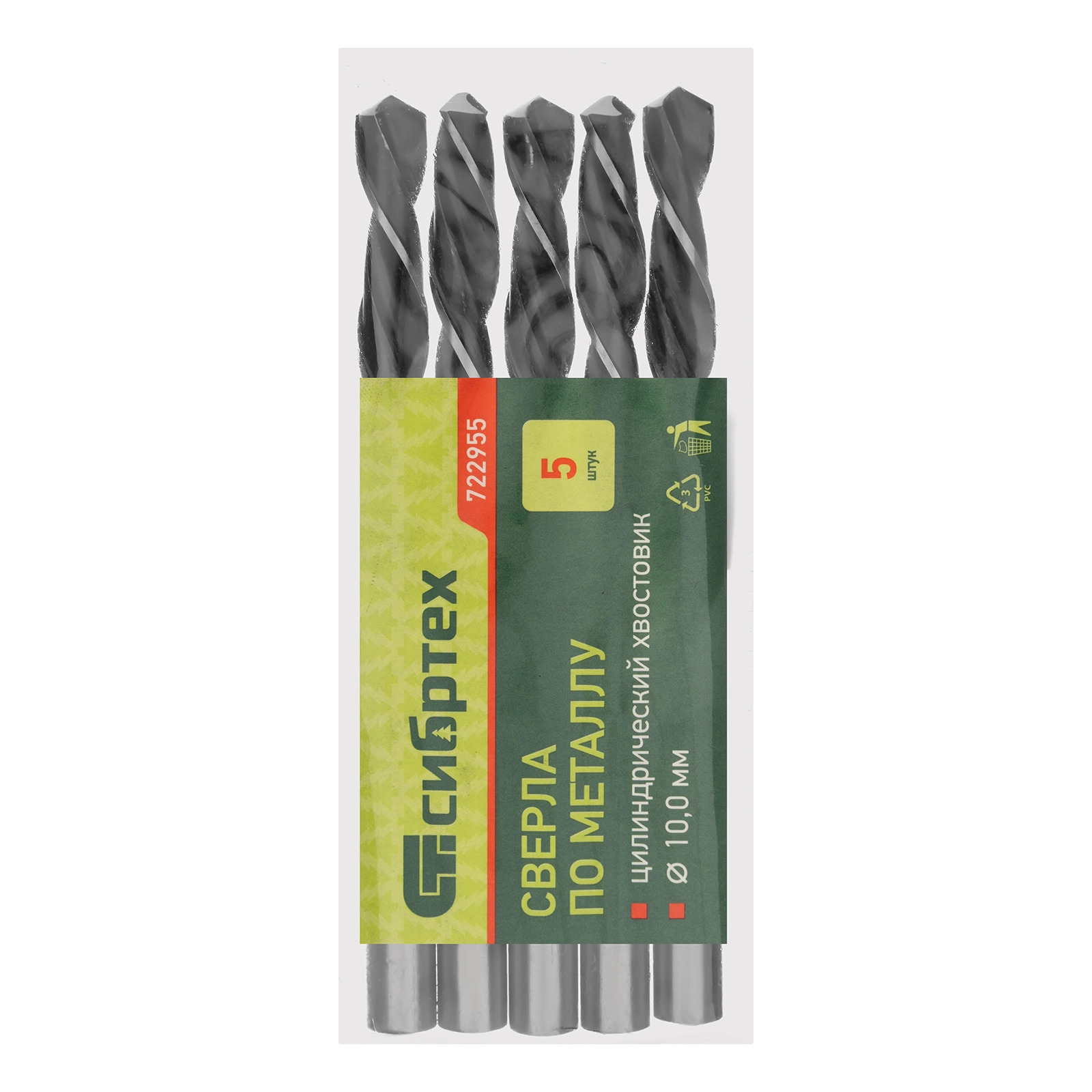 Сверло по металлу Сибртех 722955 из быстрорежущей стали, с цилиндрическим хвостовиком, 5 шт.