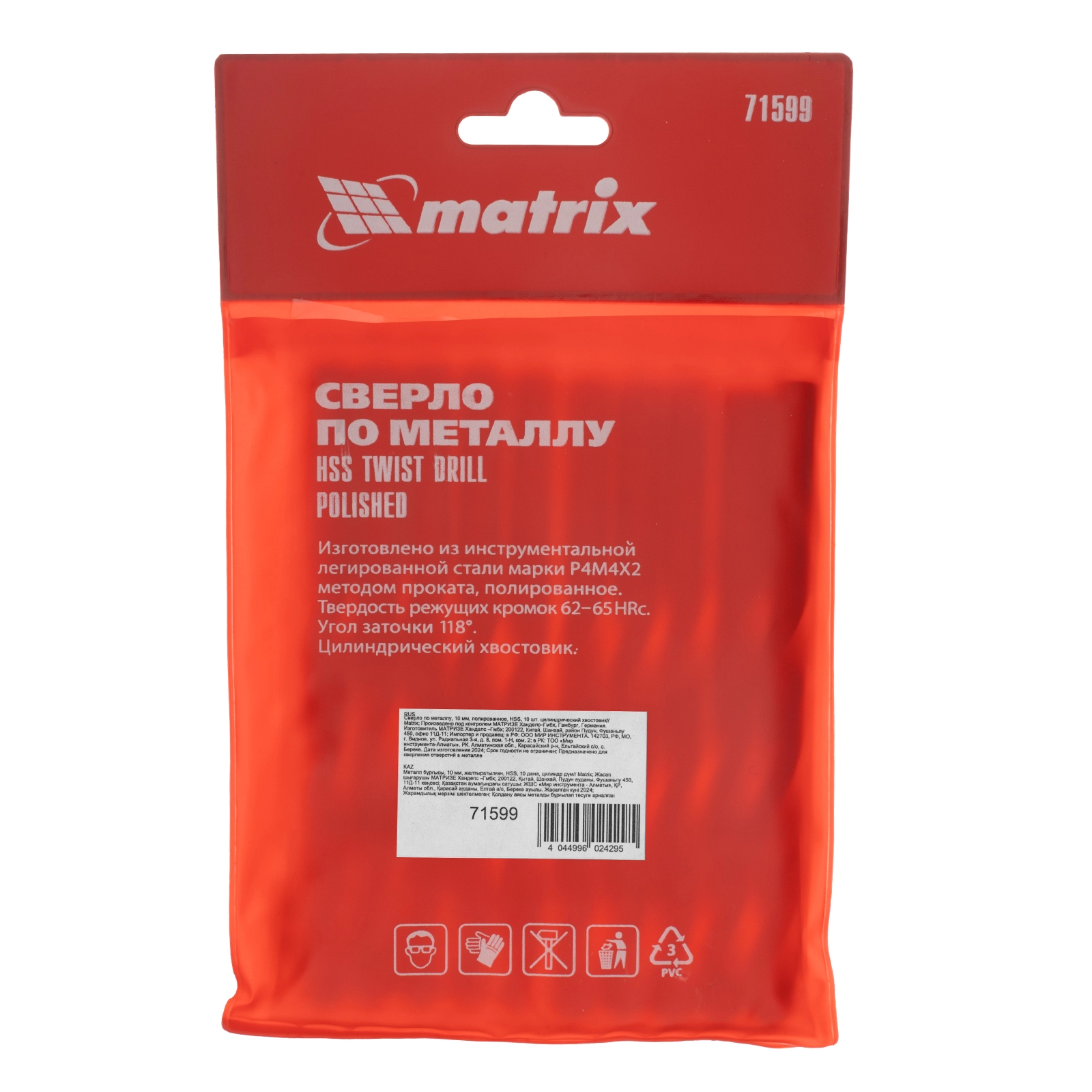 ПроизводителиСверло по металлу 10 мм, полированное, HSS, 10 шт. (71599) MATRIX