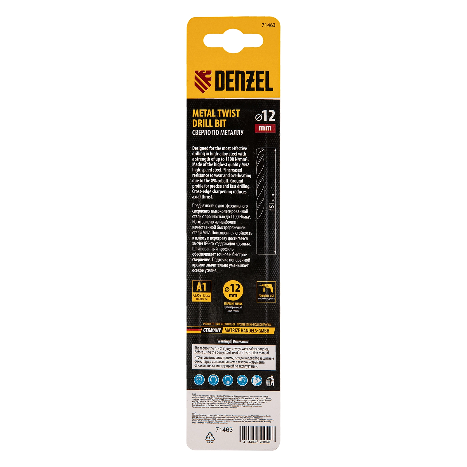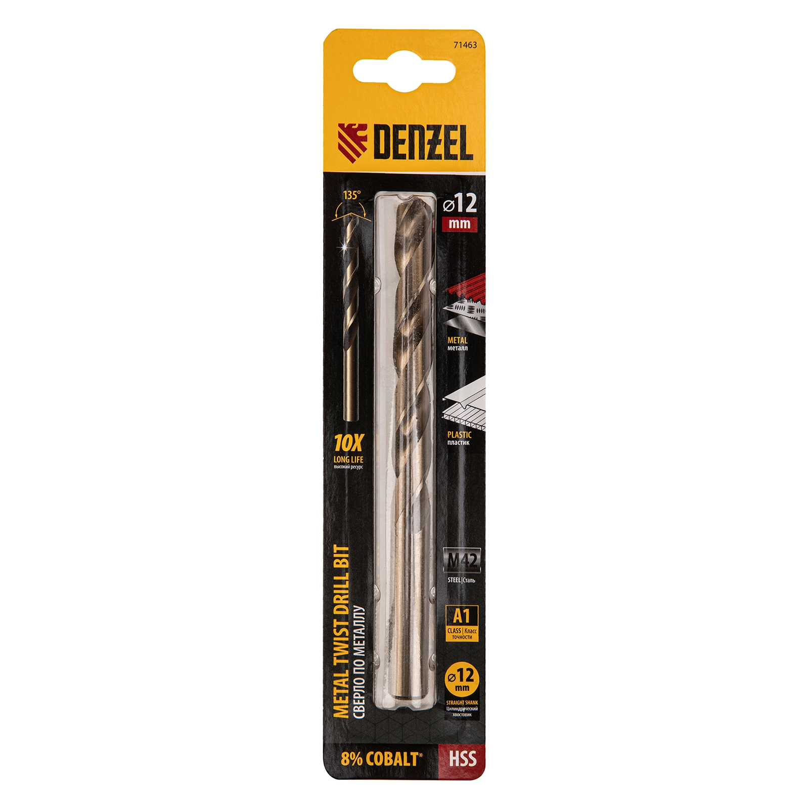 ПроизводителиСверло по металлу 12 мм, HSS Co-8% (71463) DENZEL