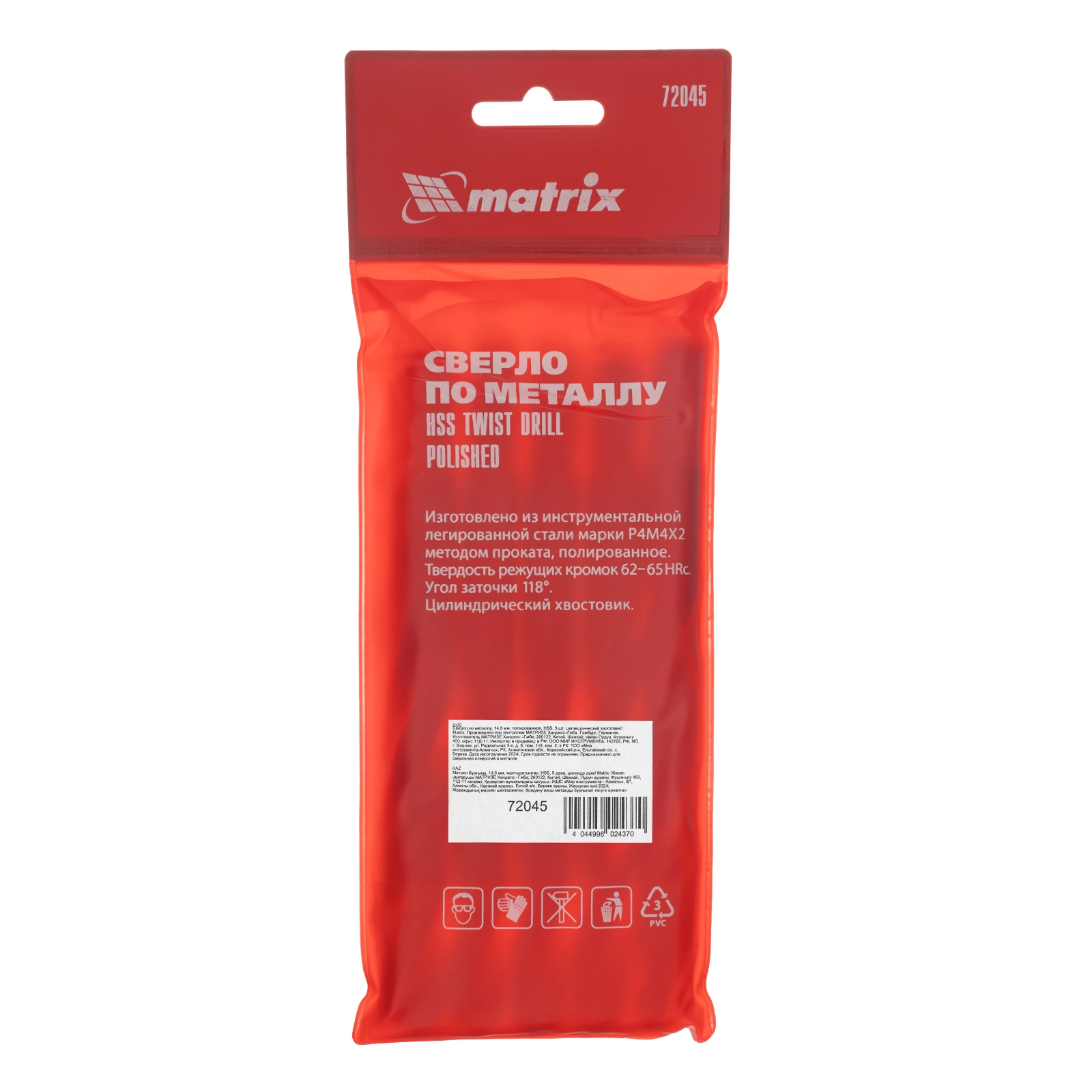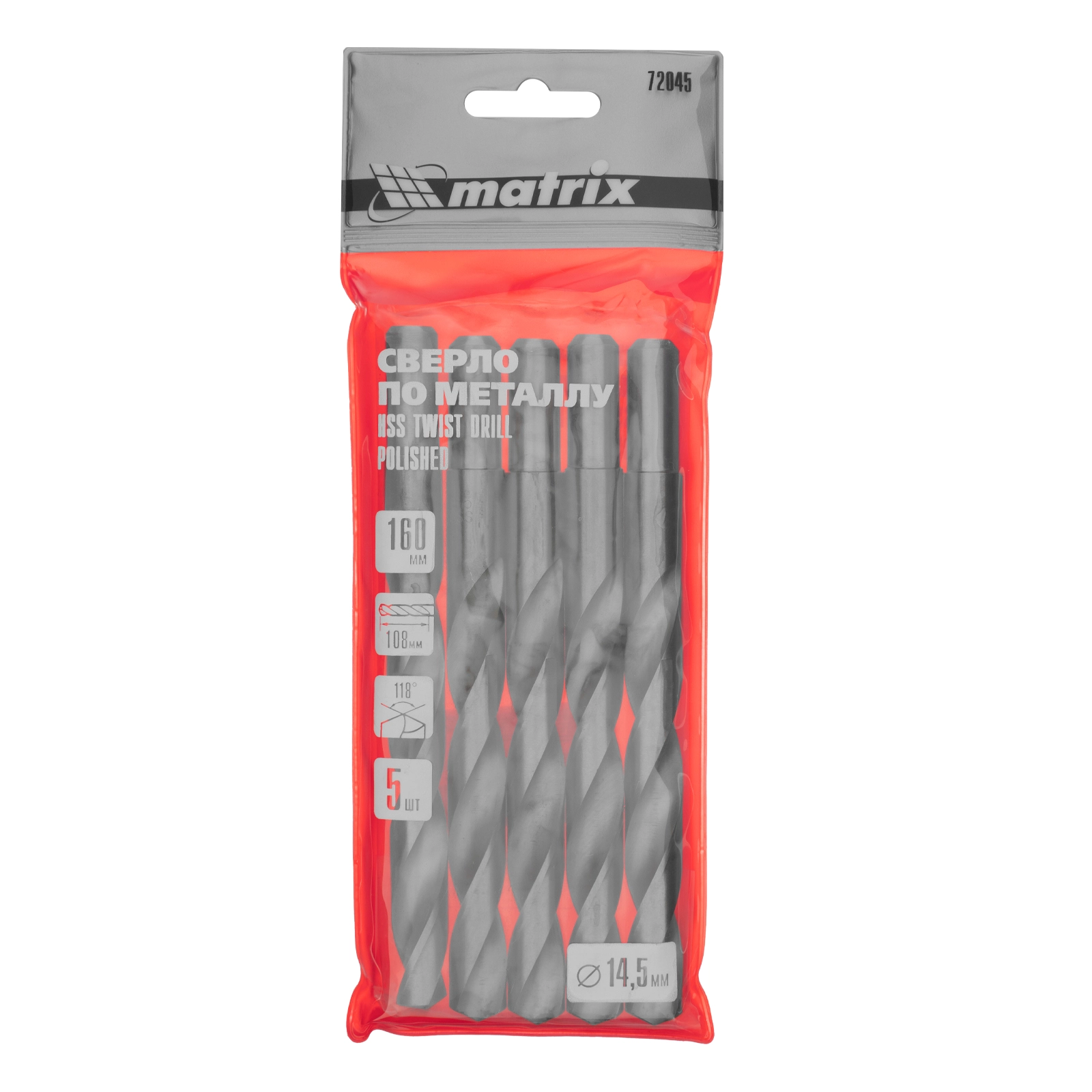 Полированное сверло Matrix 72045 диаметром 14,5 мм, из стали HSS, с цилиндрическим хвостовиком, 5 шт.