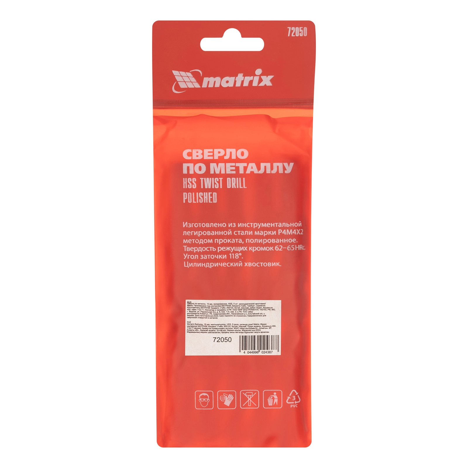 ПроизводителиСверло по металлу 15 мм, полированное, HSS, 5 шт. (72050) MATRIX