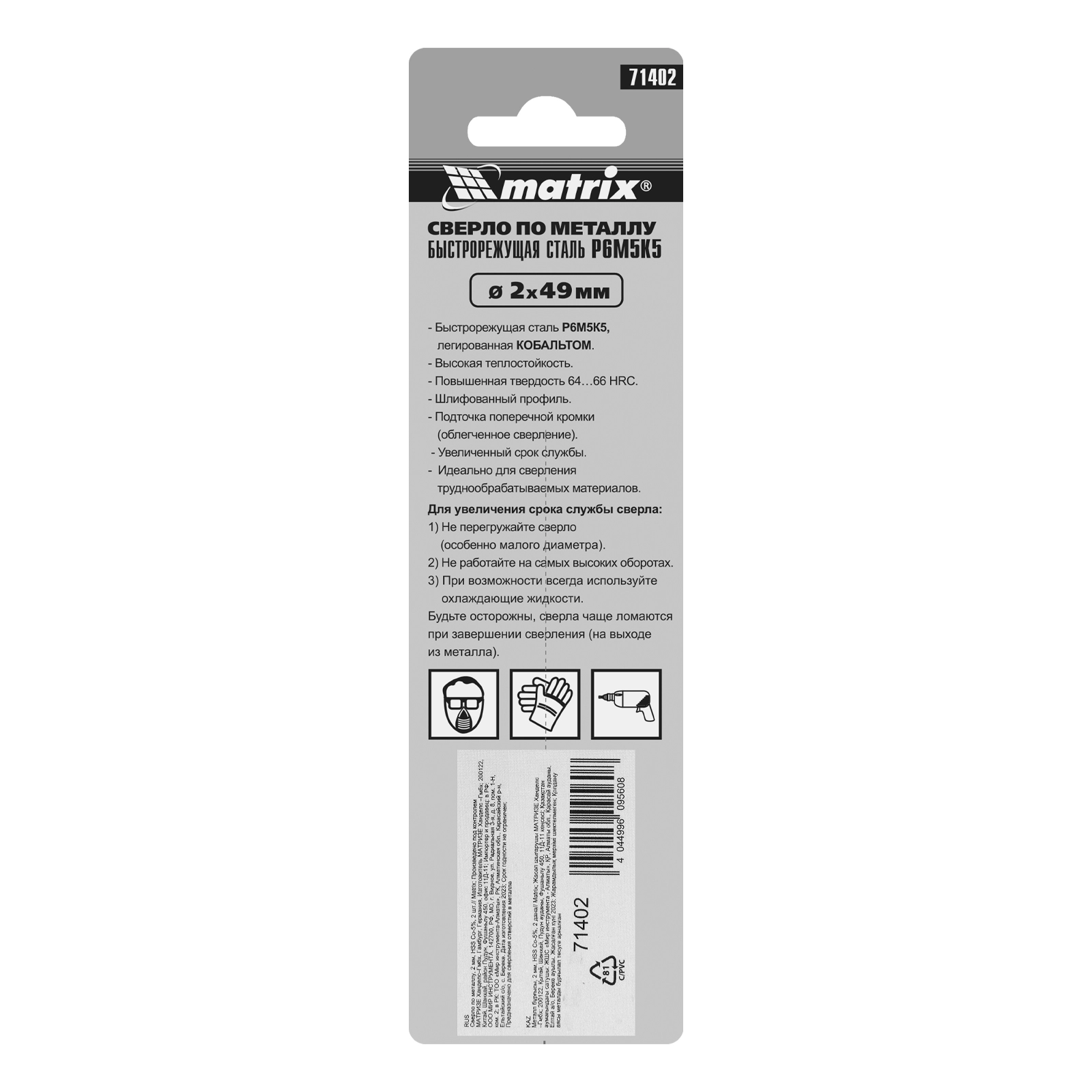 ПроизводителиСверло по металлу 2 мм, HSS Co-5%, 2 шт. (71402) MATRIX