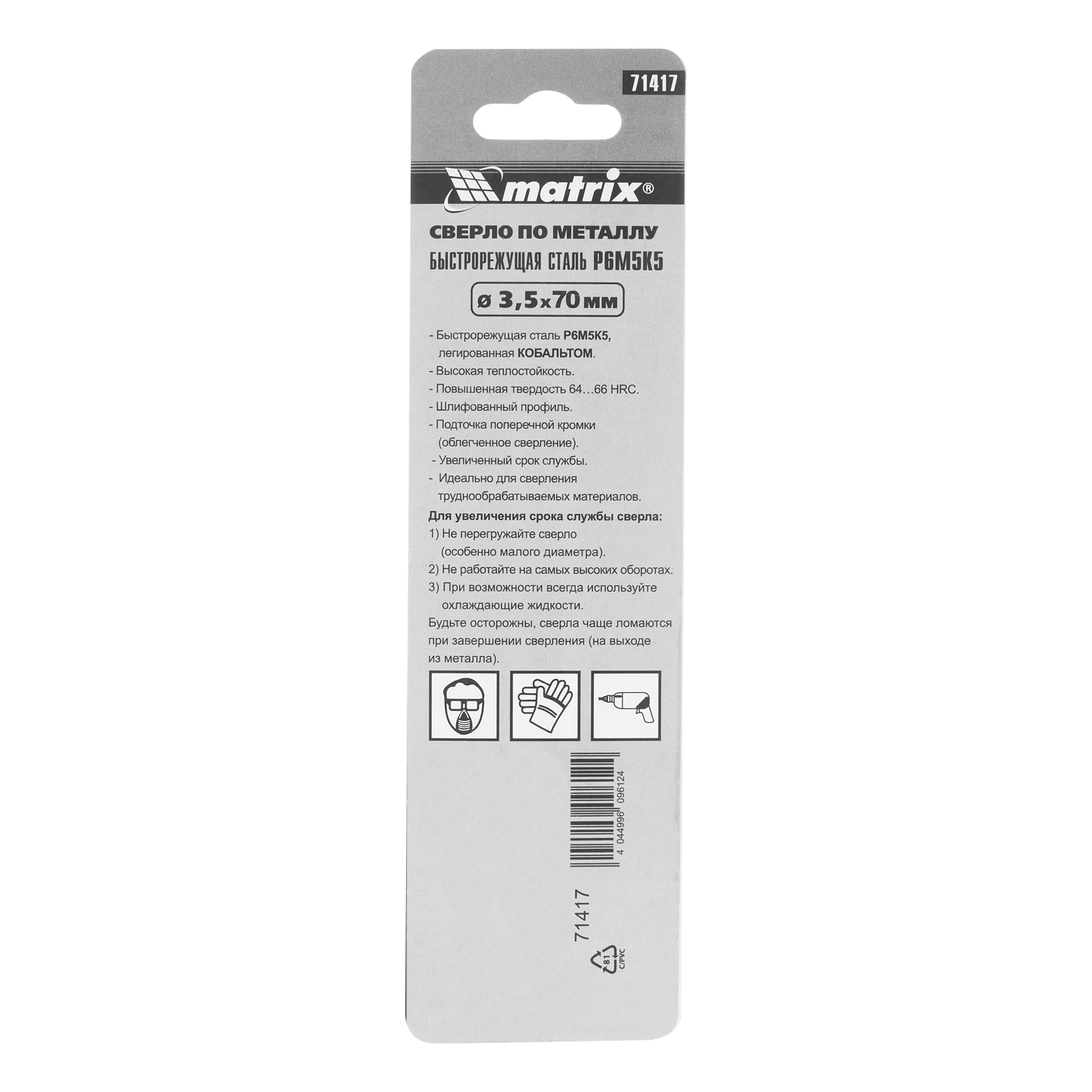 ПроизводителиСверло по металлу 3,5 мм, HSS Co-5%, 2 шт. (71417) MATRIX