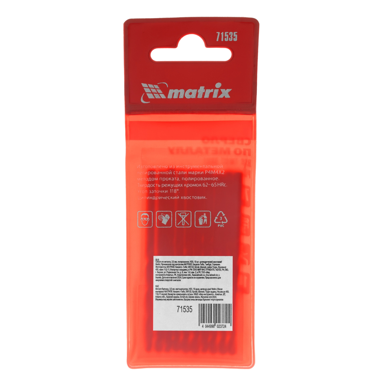 Полированное сверло Matrix 71535 размером 3,5 мм, из стали HSS, с цилиндрическим хвостовиком, 10 шт.