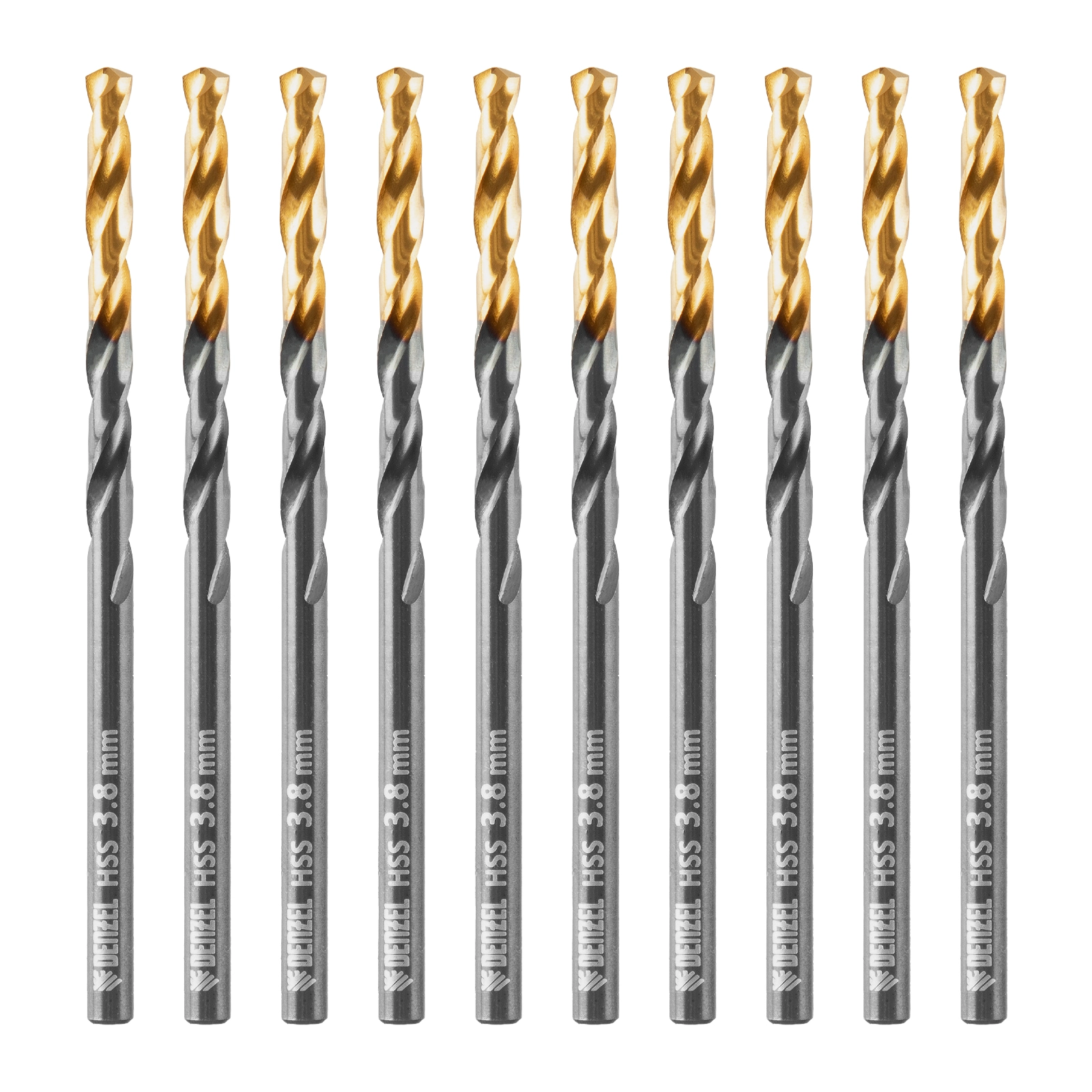 Сверло по металлу Denzel Golden Tip 717208 диаметром 3,8 мм, из стали HSS-TiN, 10 шт.