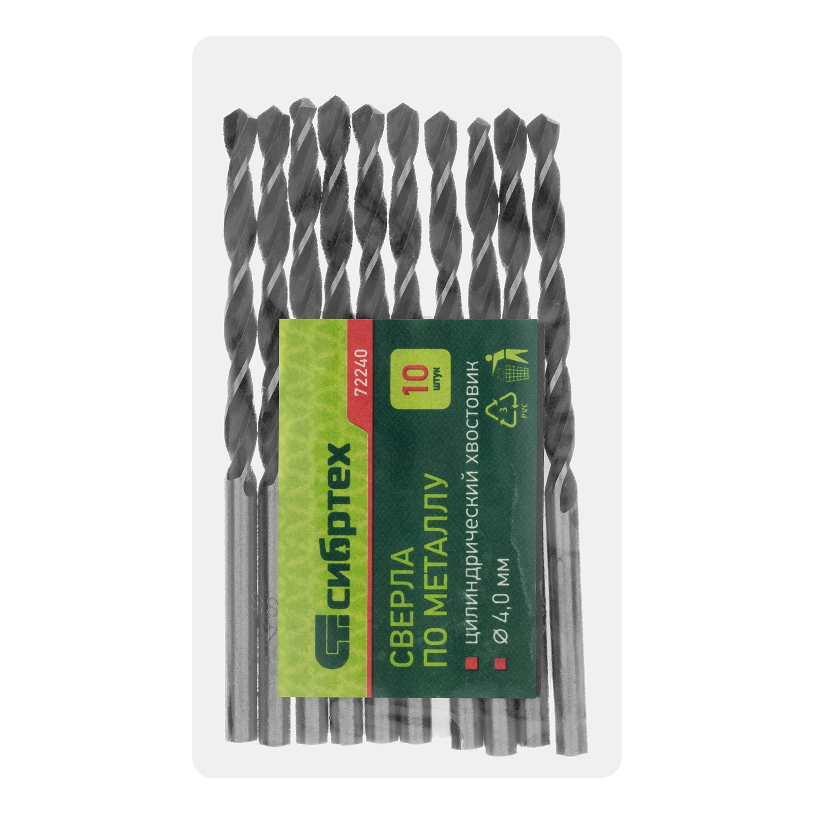 Сверло по металлу Сибртех 72240 из быстрорежущей стали, с цилиндрическим хвостовиком, 10 шт.