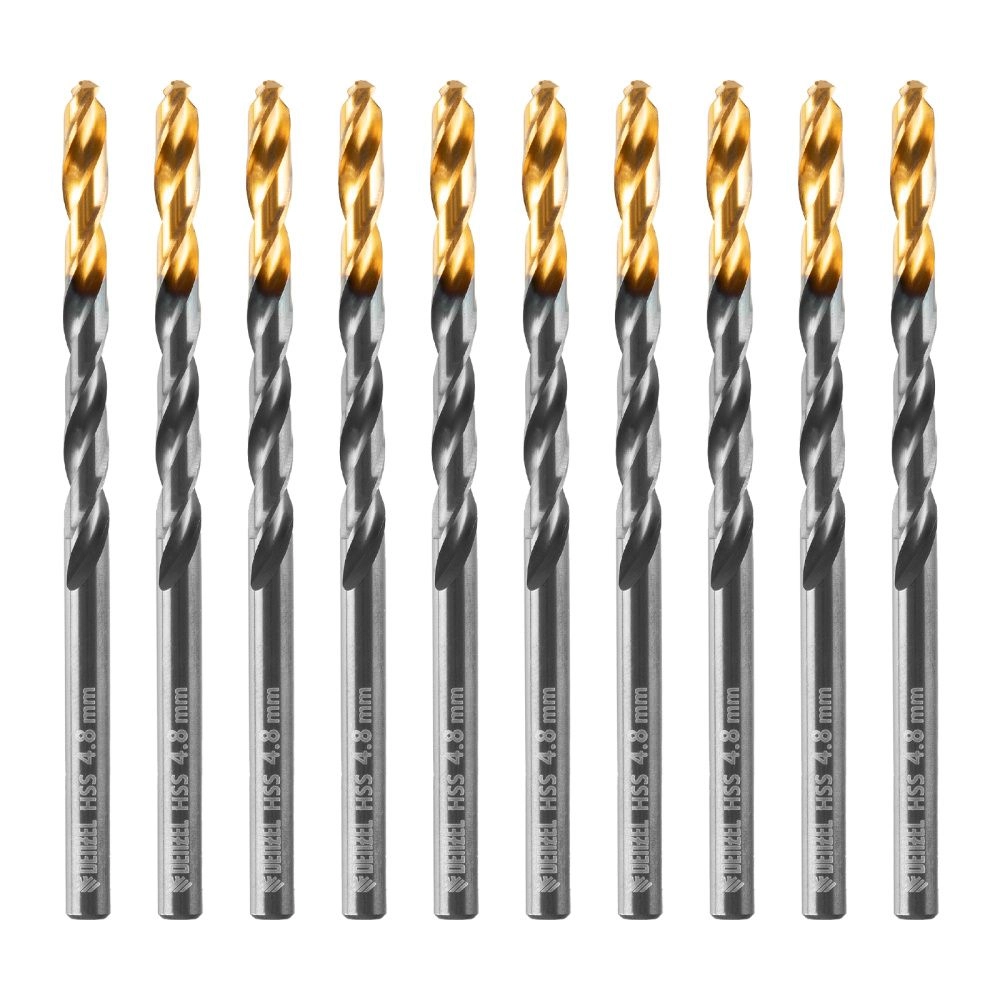 ПроизводителиСверло по металлу 4,8 мм, HSS-TiN, Golden Tip, 10 шт. (717212) DENZEL