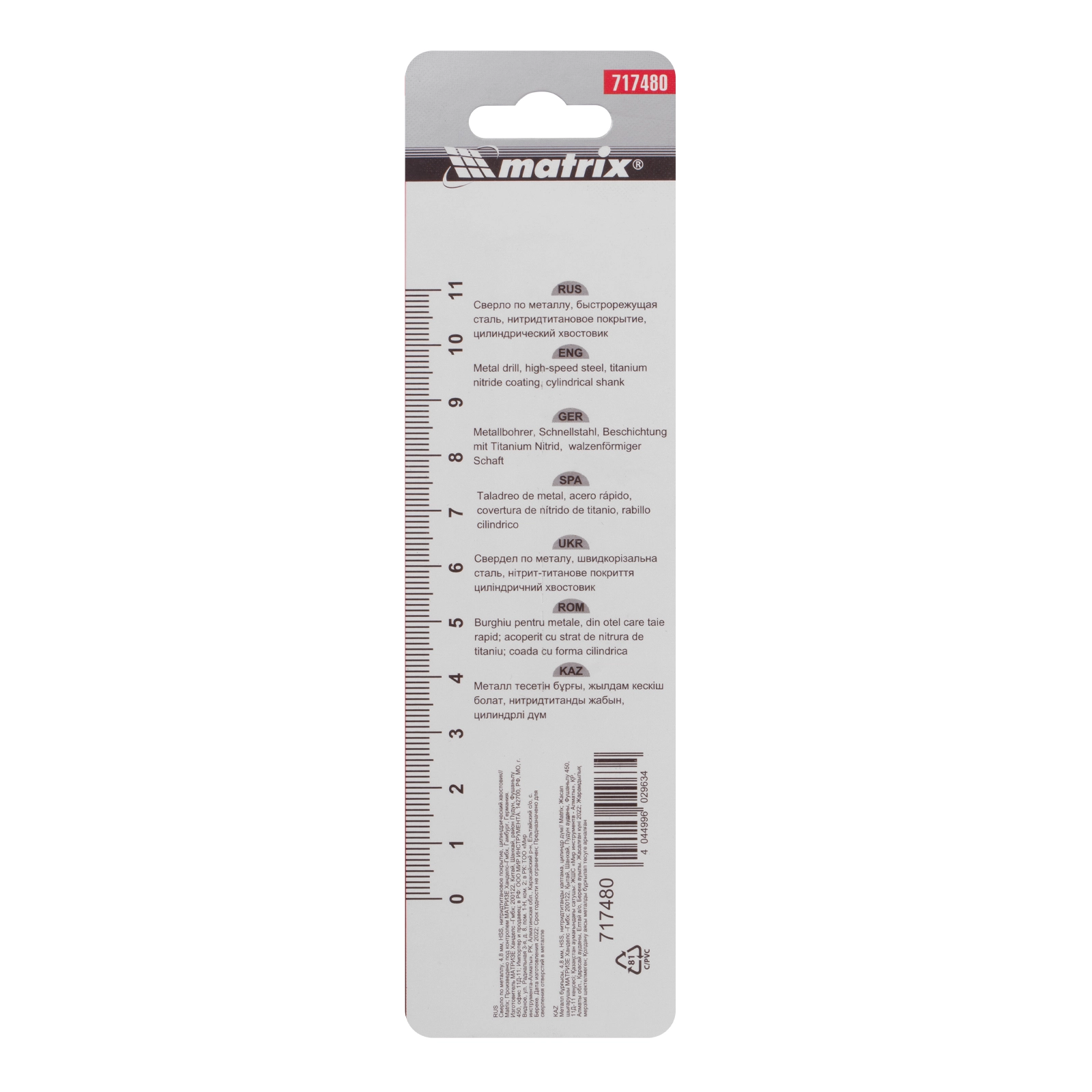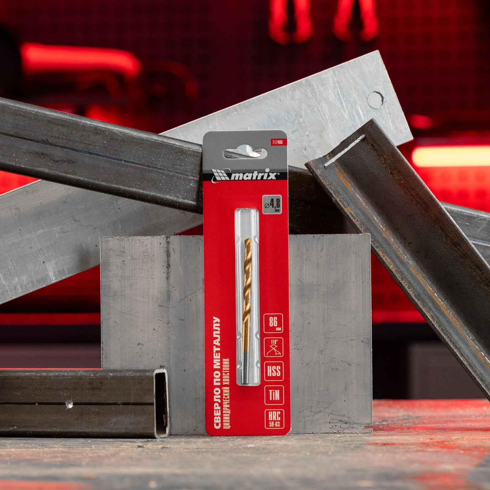 ПроизводителиСверло по металлу 4,8 мм, HSS, TiN покрытие, (717480) MATRIX