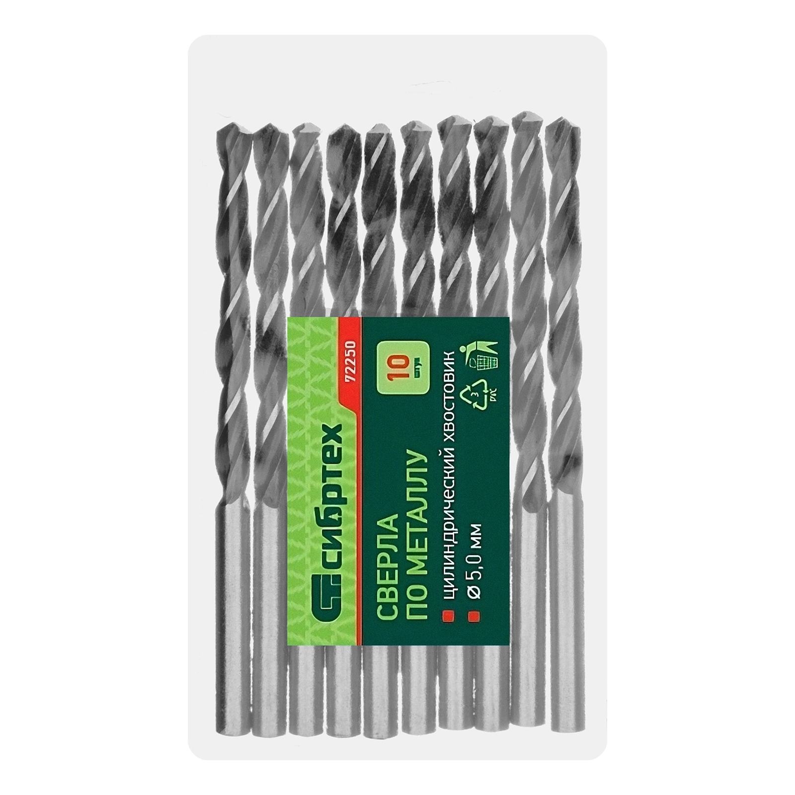 ПроизводителиСверло по металлу 5,0 мм, HSS сталь, 10 шт. (72250) СИБРТЕХ