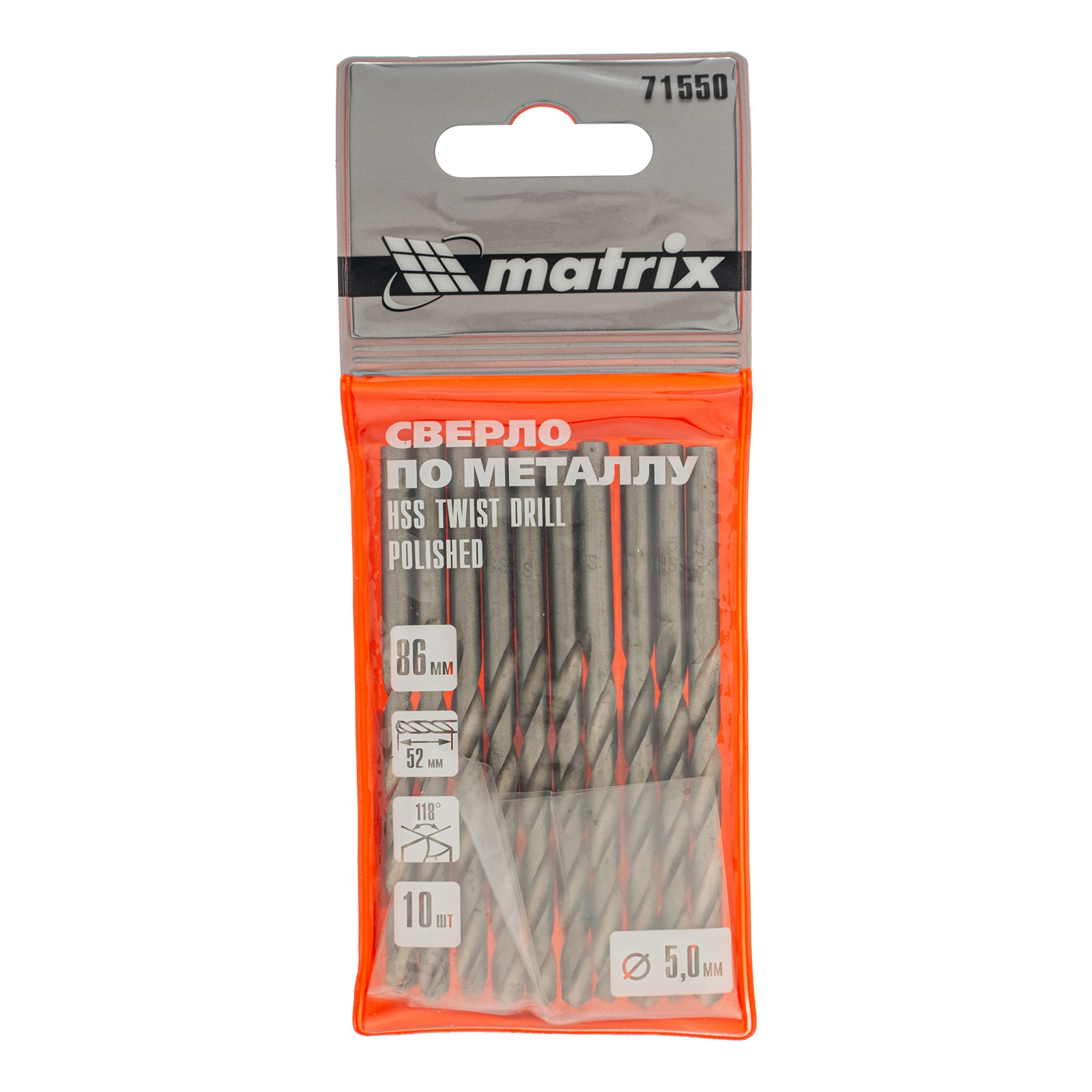 ПроизводителиСверло по металлу 5,0 мм, полированное, HSS, 10 шт. (71550) MATRIX
