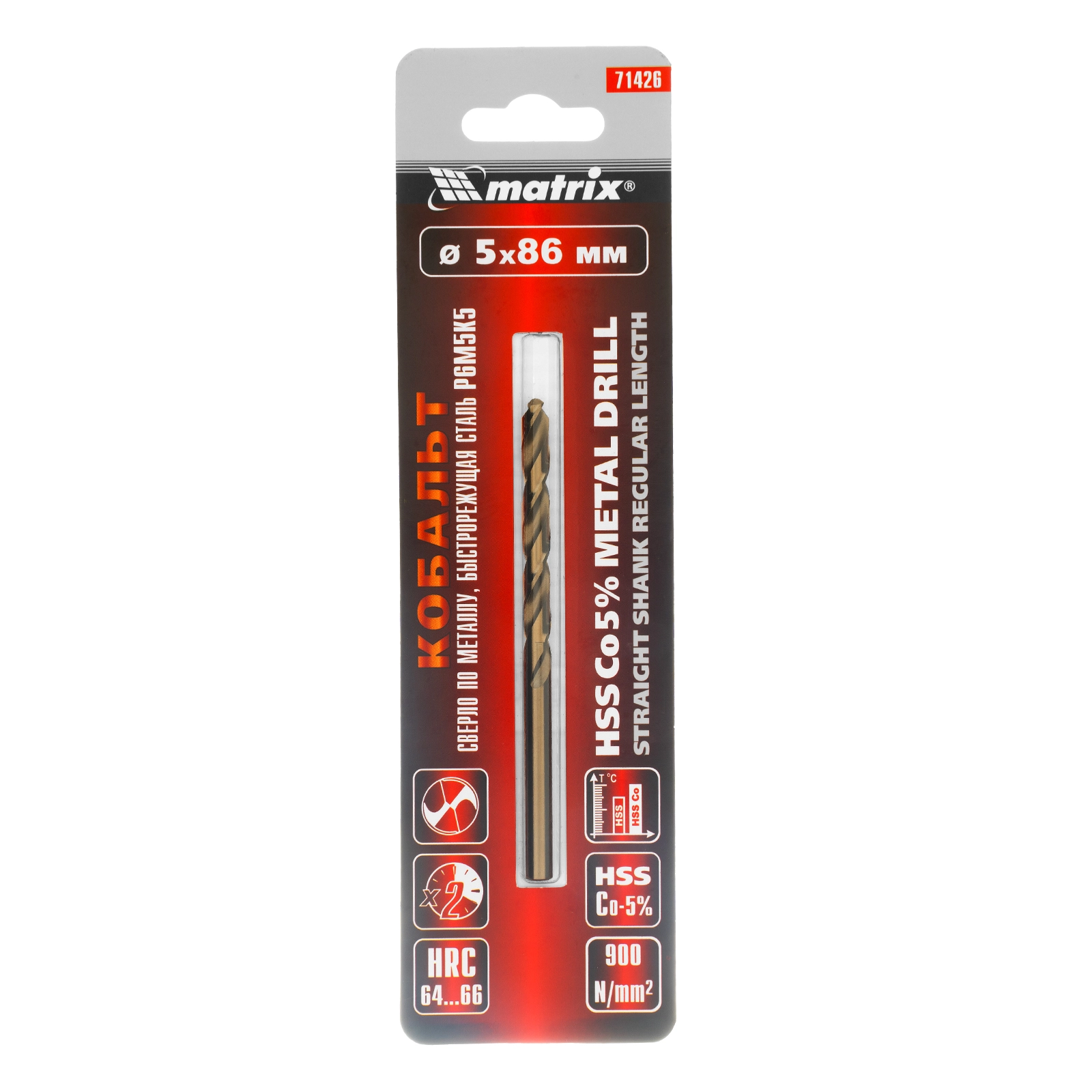 ПроизводителиСверло по металлу 5 мм, HSS Co-5% (71426) MATRIX