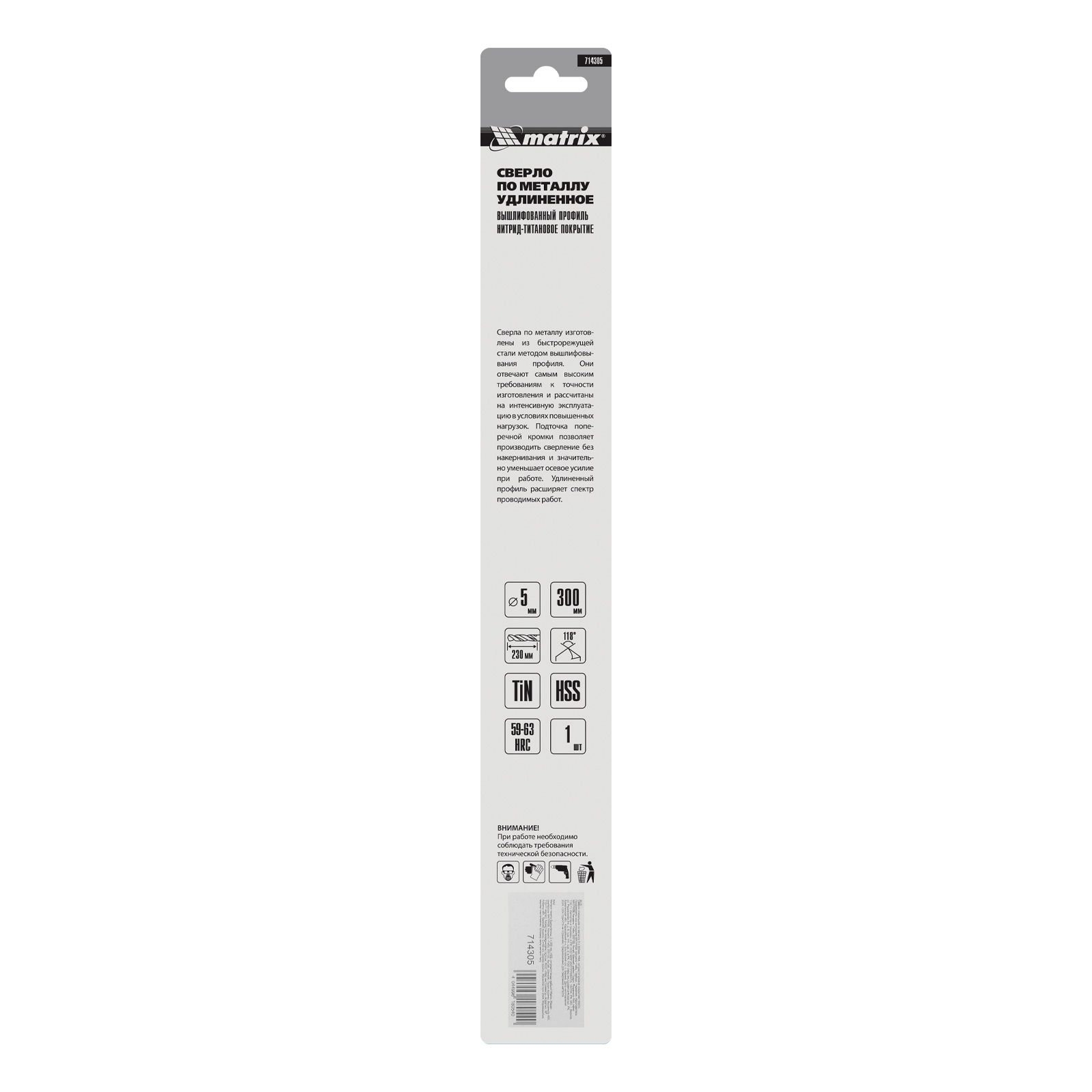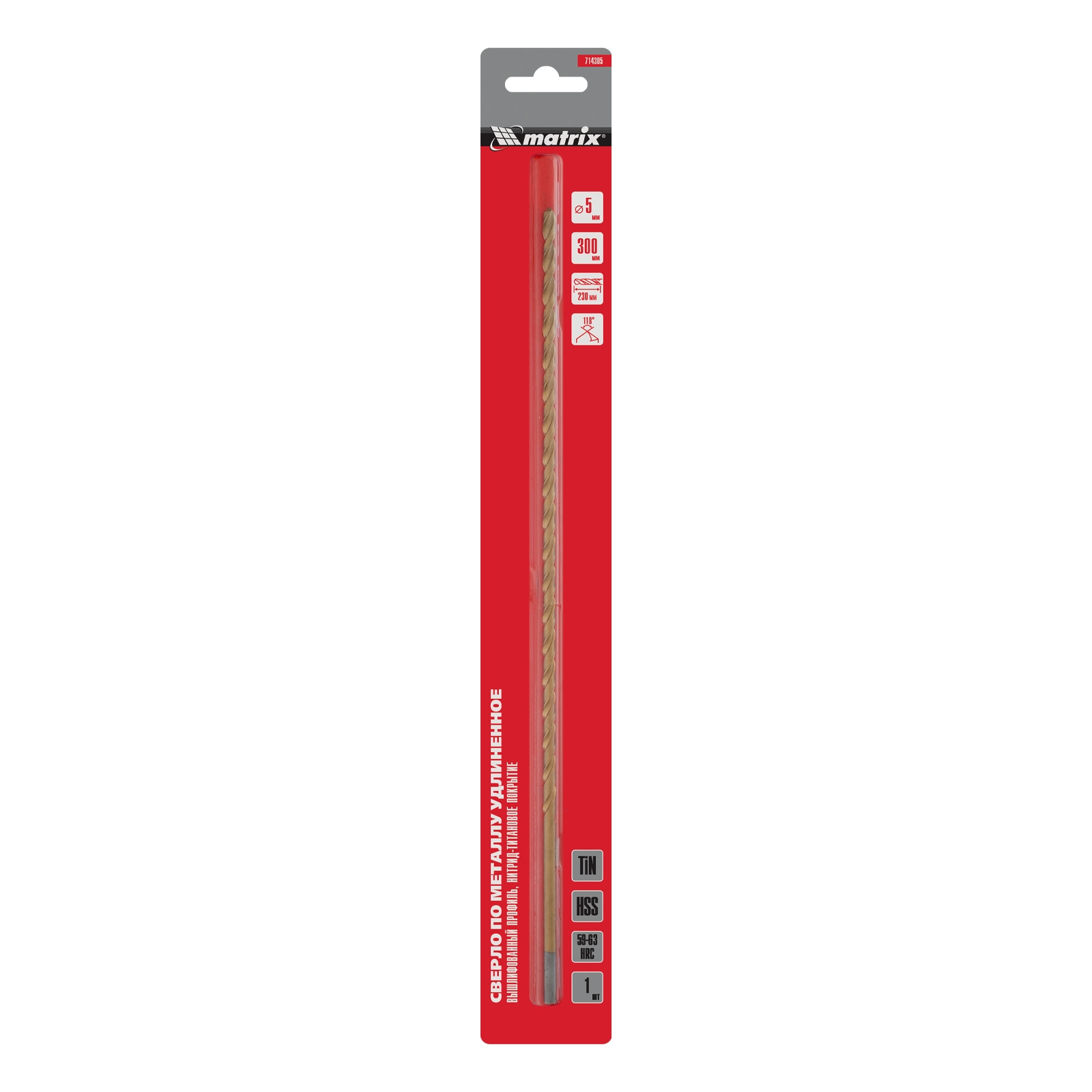ПроизводителиСверло по металлу 5 x 300мм, HSS, TiN покрытие (714305) MATRIX