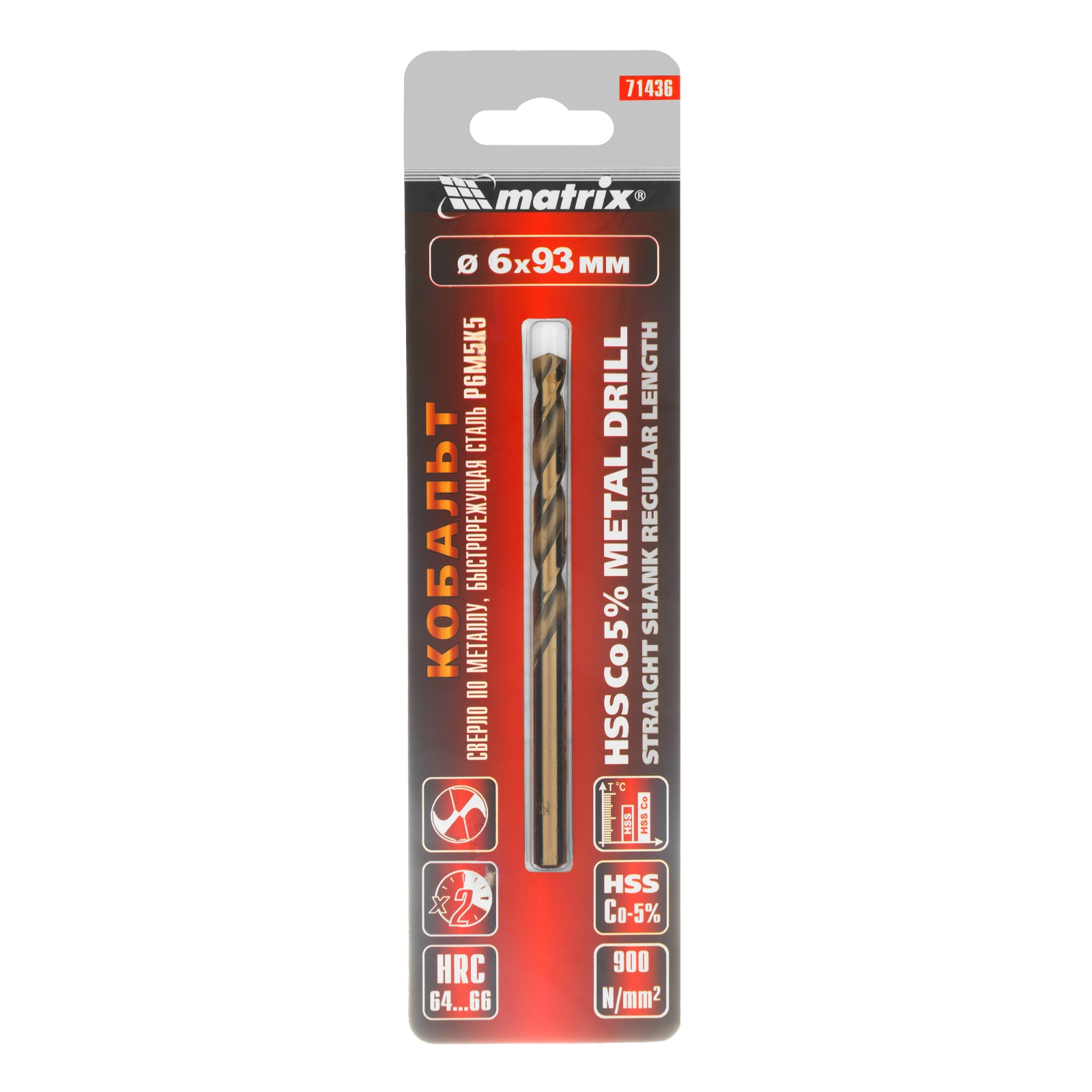ПроизводителиСверло по металлу 6 мм, HSS Co-5% (71436) MATRIX