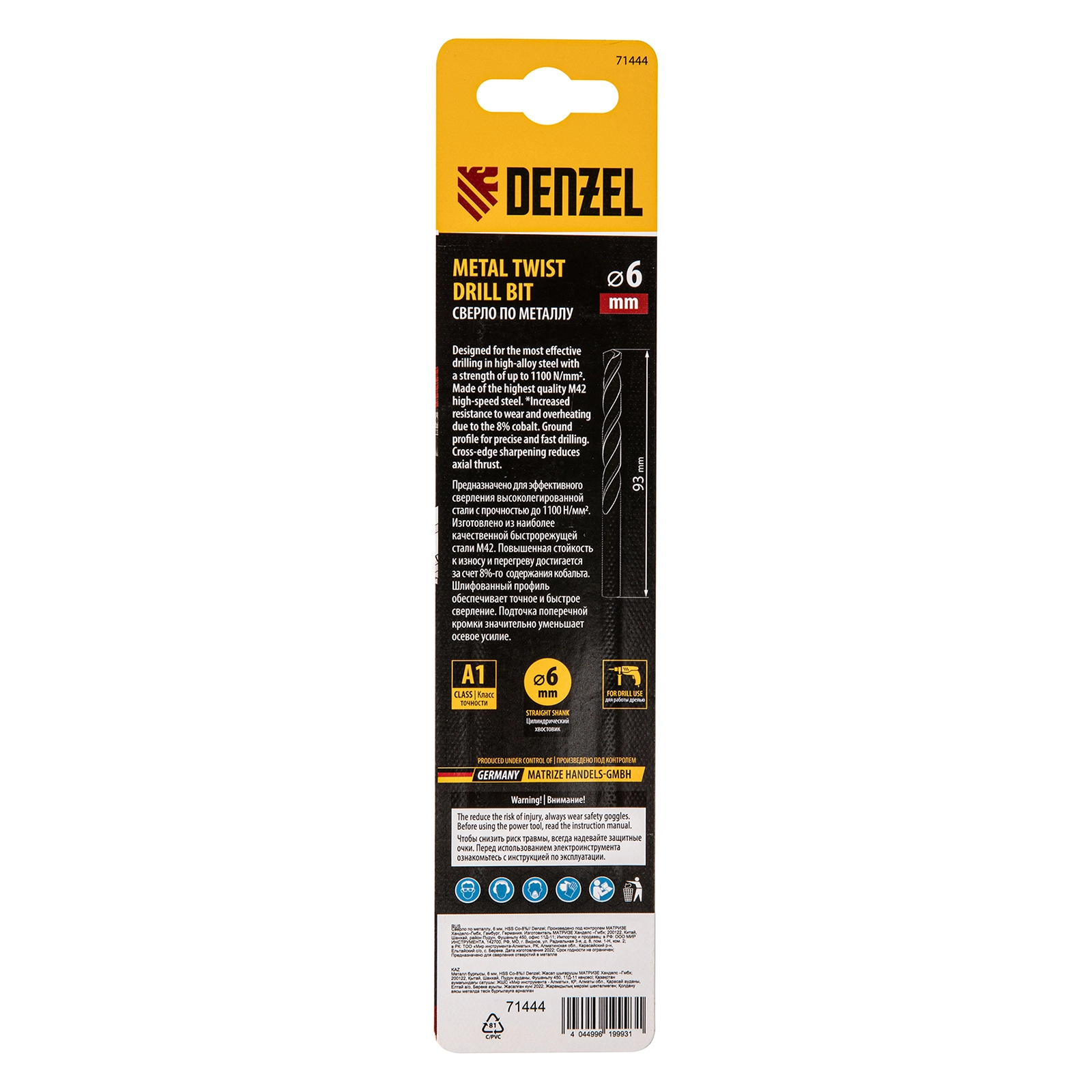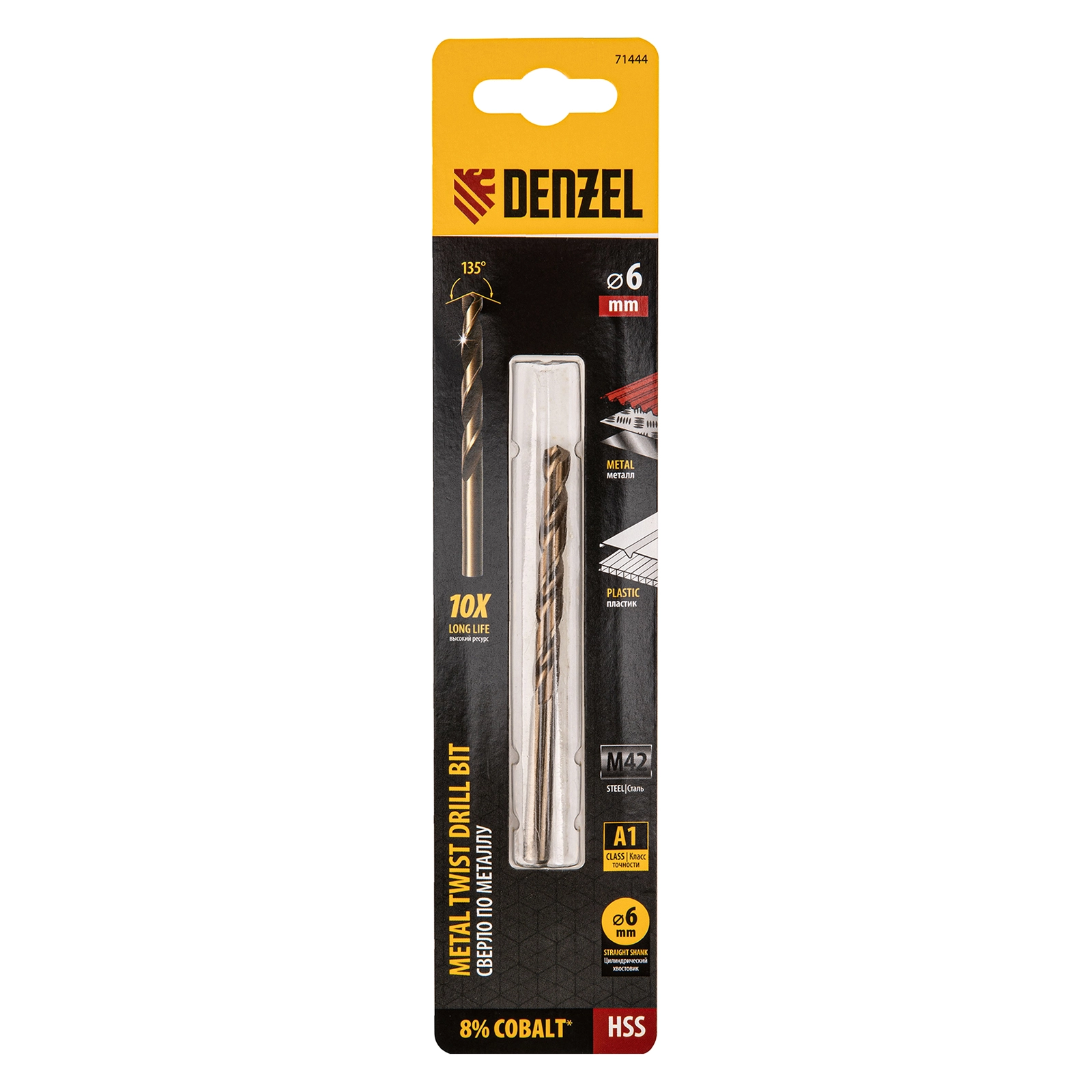 ПроизводителиСверло по металлу 6 мм, HSS Co-8% (71444) DENZEL