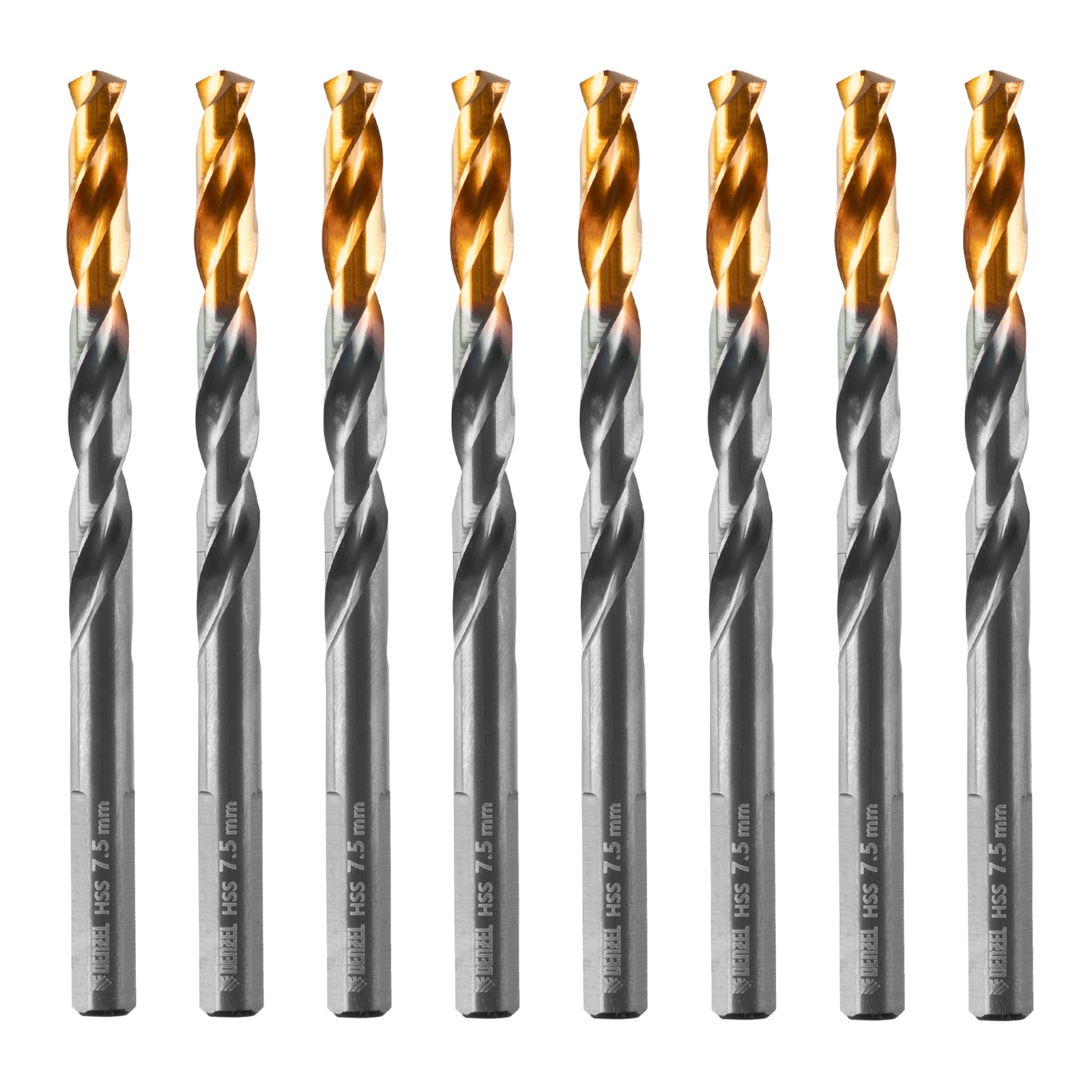 ПроизводителиСверло по металлу 7,5 мм, HSS-TiN, Golden Tip, 8 шт. (717218) DENZEL