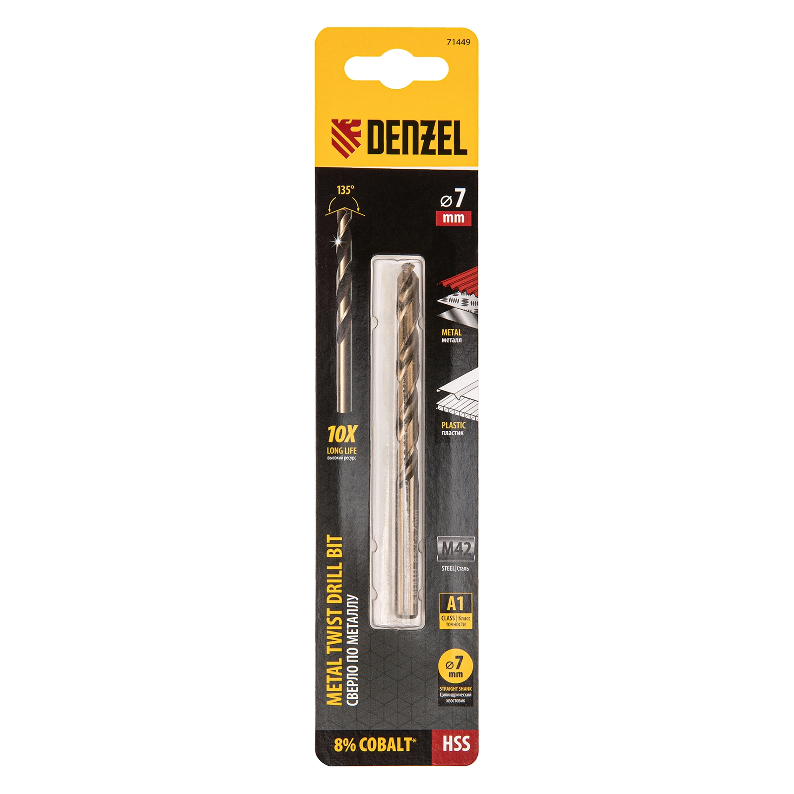 ПроизводителиСверло по металлу 7 мм, HSS Co-8% (71449) DENZEL