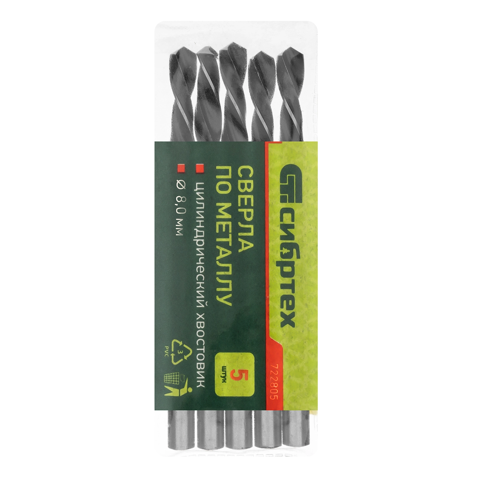 ПроизводителиСверло по металлу 8,0 мм, HSS сталь, 5 шт. (722805) СИБРТЕХ