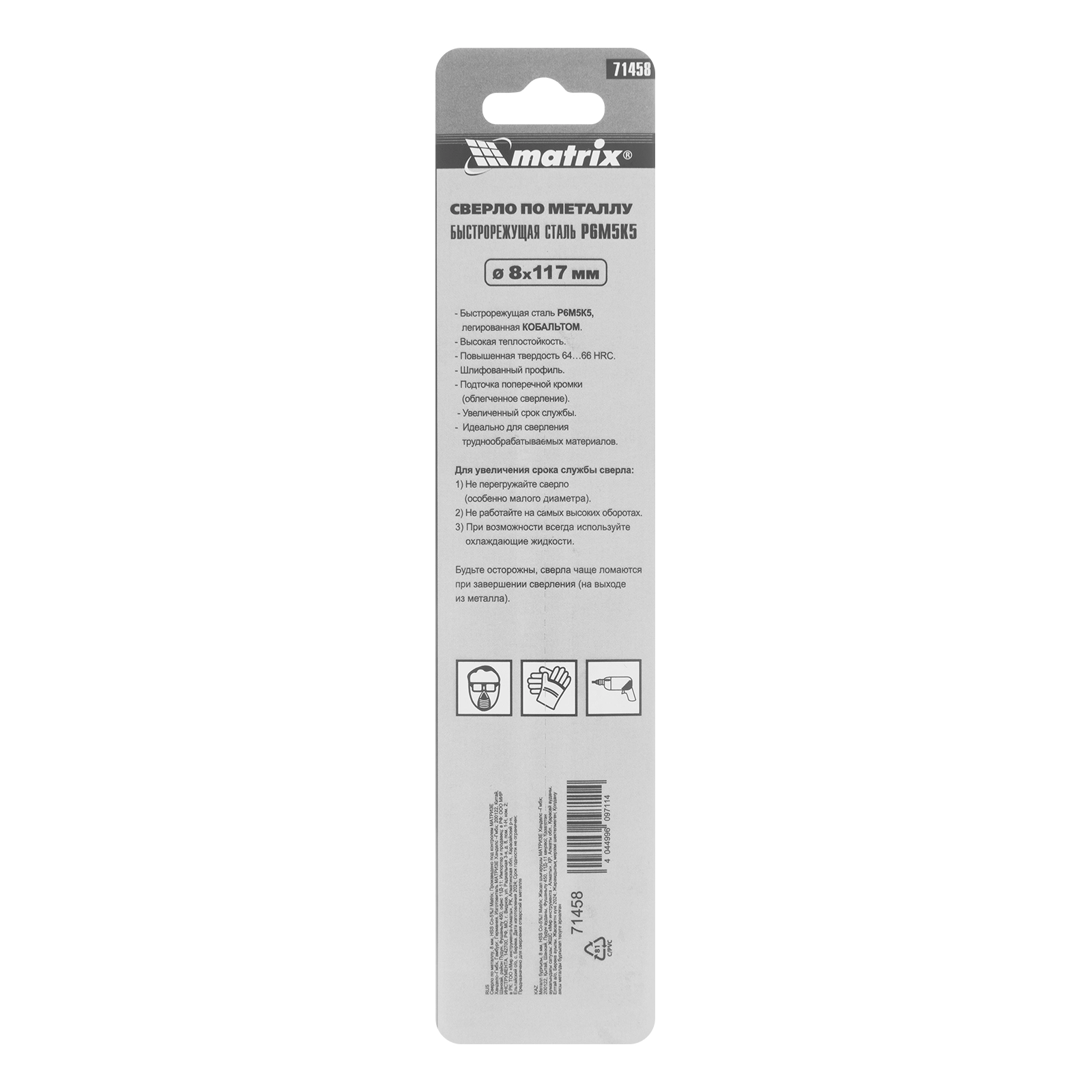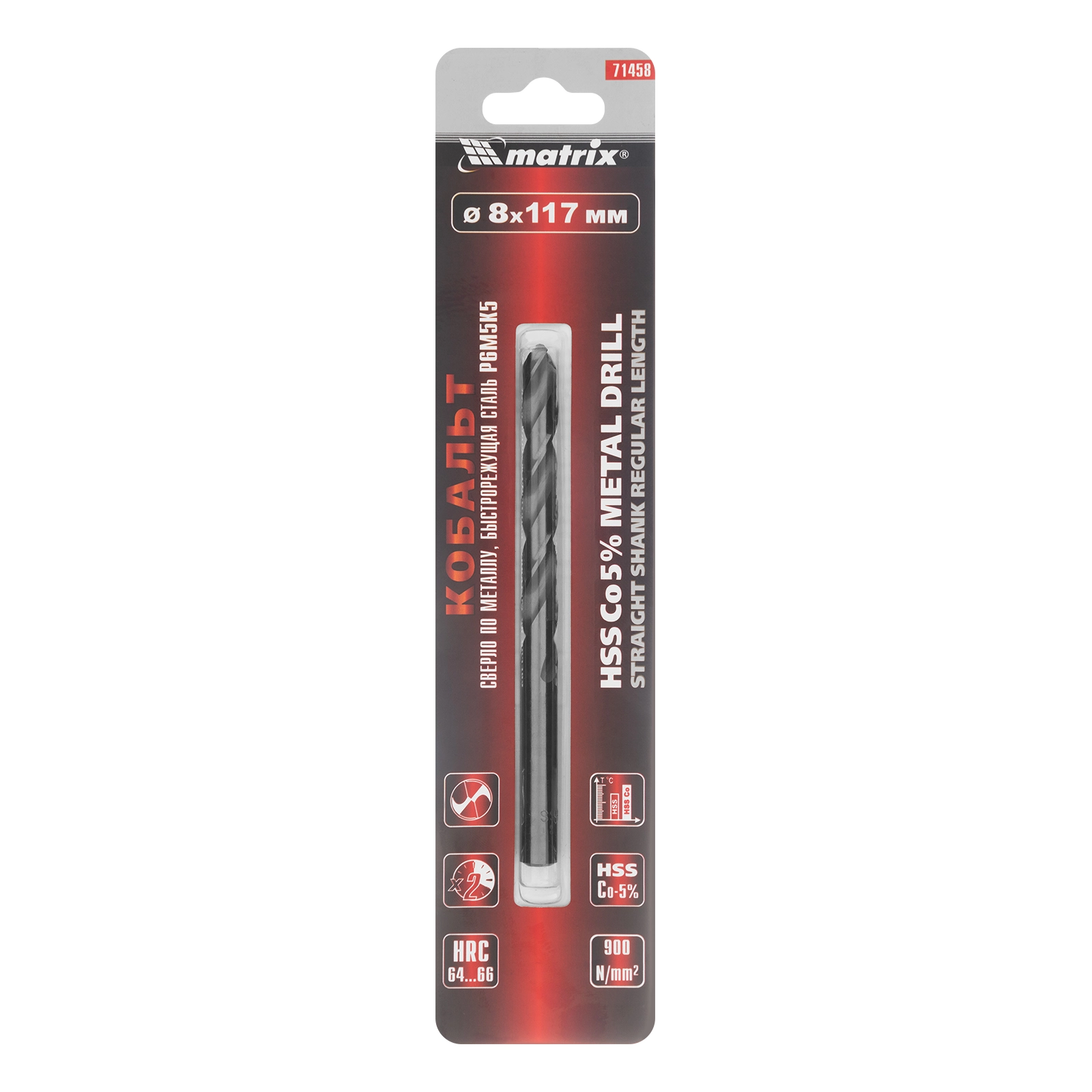 ПроизводителиСверло по металлу 8 мм, HSS Co-5% (71458) MATRIX