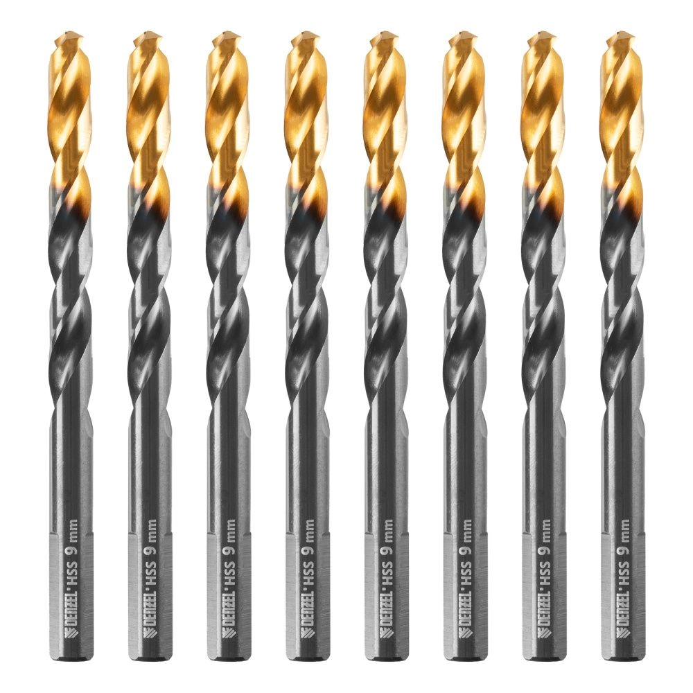 Сверло по металлу Denzel Golden Tip 717221 диаметром 9 мм, из стали HSS-TIn, 10 шт.