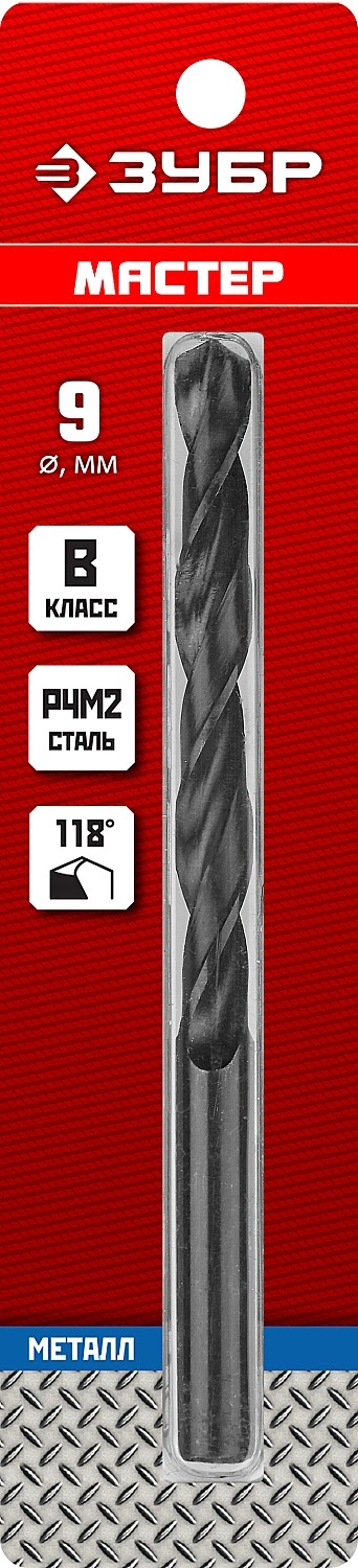 ПроизводителиСверло по металлу ц/х 9.0х81х125 мм, HSS, класс В "МАСТЕР" (29605-9) ЗУБР