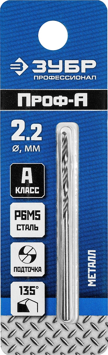 ПроизводителиСверло по металлу ц/х 2.2х27х53 мм, HSS, класс A "Проф-А""ПРОФЕССИОНАЛ" (29625-2.2) ЗУБР