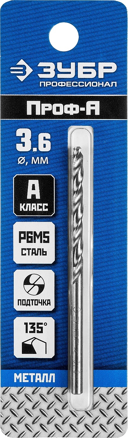 ПроизводителиСверло по металлу ц/х 3.6х39х70 мм, HSS, класс A "Проф-А""ПРОФЕССИОНАЛ" (29625-3.6) ЗУБР