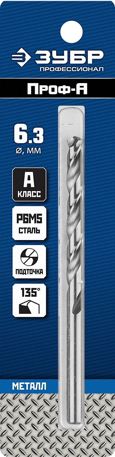 ПроизводителиСверло по металлу ц/х 6.3х63х101 мм, HSS, класс A "Проф-А""ПРОФЕССИОНАЛ" (29625-6.3) ЗУБР