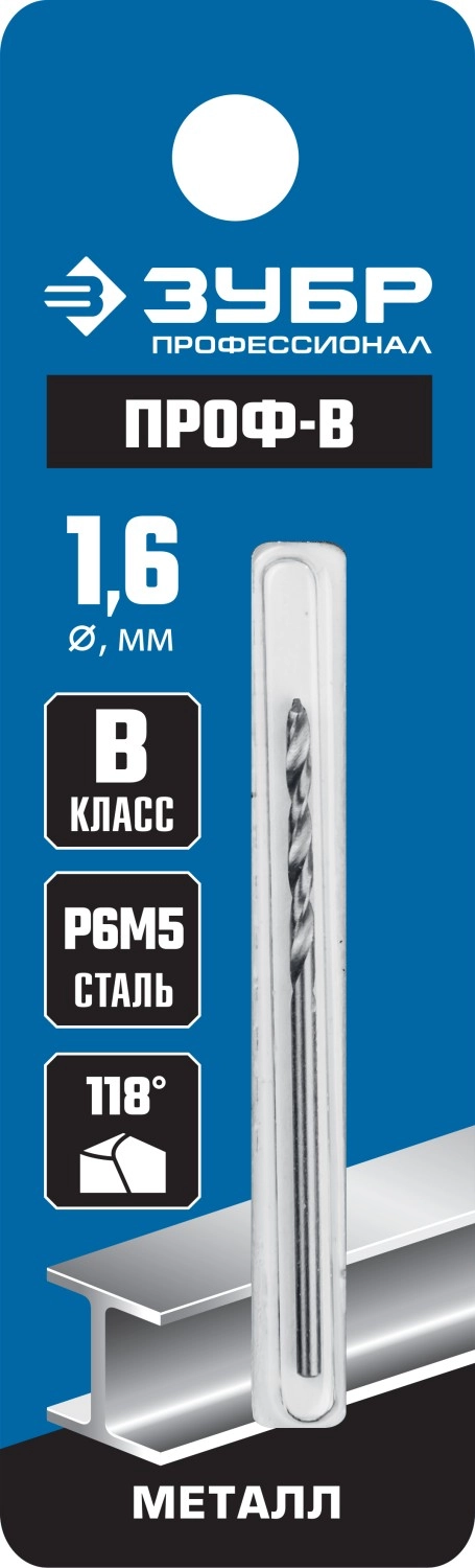 ПроизводителиСверло по металлу ц/х 1.6х20х43 мм, HSS, класс B "Проф-В""ПРОФЕССИОНАЛ" (29621-1.6) ЗУБР