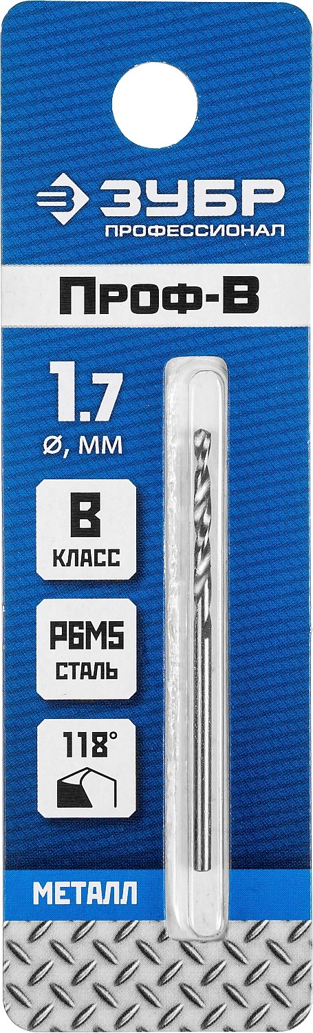 ПроизводителиСверло по металлу ц/х 1.7х20х43 мм, HSS, класс B "Проф-В""ПРОФЕССИОНАЛ" (29621-1.7) ЗУБР