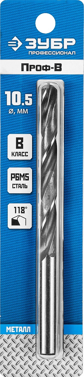 ПроизводителиСверло по металлу ц/х 10.5х87х133 мм, HSS, класс B "Проф-В""ПРОФЕССИОНАЛ" (29621-10.5) ЗУБР