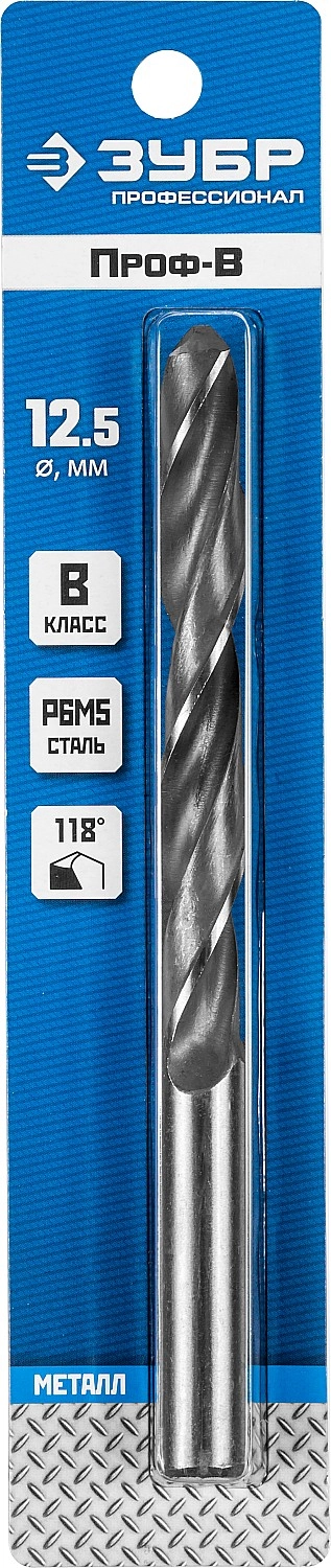 ПроизводителиСверло по металлу ц/х 12.5х101х151 мм, HSS, класс B "Проф-В""ПРОФЕССИОНАЛ" (29621-12.5) ЗУБР