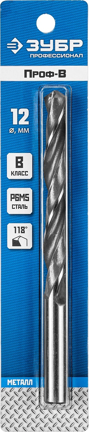 ПроизводителиСверло по металлу ц/х 12.0х101х151 мм, HSS, класс B "Проф-В""ПРОФЕССИОНАЛ" (29621-12) ЗУБР