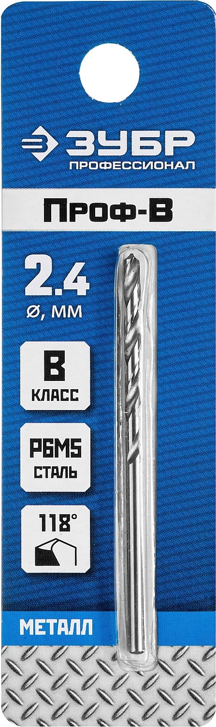 ПроизводителиСверло по металлу ц/х 2.4х30х57 мм, HSS, класс B "Проф-В""ПРОФЕССИОНАЛ" (29621-2.4) ЗУБР
