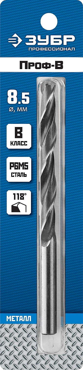 ПроизводителиСверло по металлу ц/х 8.5х75х117 мм, HSS, класс B "Проф-В""ПРОФЕССИОНАЛ" (29621-8.5) ЗУБР