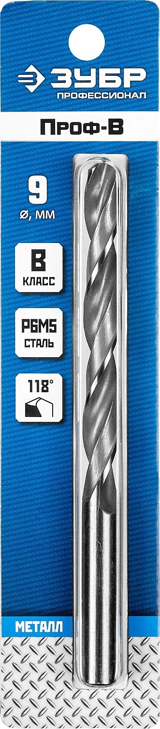 ПроизводителиСверло по металлу ц/х 9.0х81х125 мм, HSS, класс B "Проф-В""ПРОФЕССИОНАЛ" (29621-9) ЗУБР