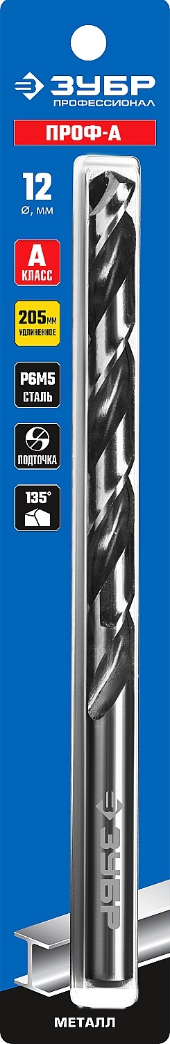 ПроизводителиСверло по металлу ц/х 12.0х134х205 мм, удл. HSS, класс А1 "ПРОФ-А" (29624-12) ЗУБР