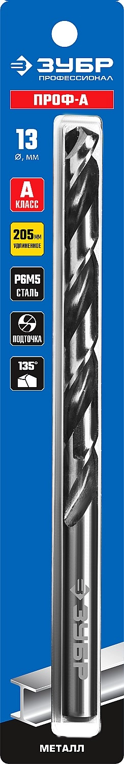 ПроизводителиСверло по металлу ц/х 13.0х134х205 мм, удл. HSS, класс А1 "ПРОФ-А" (29624-13) ЗУБР